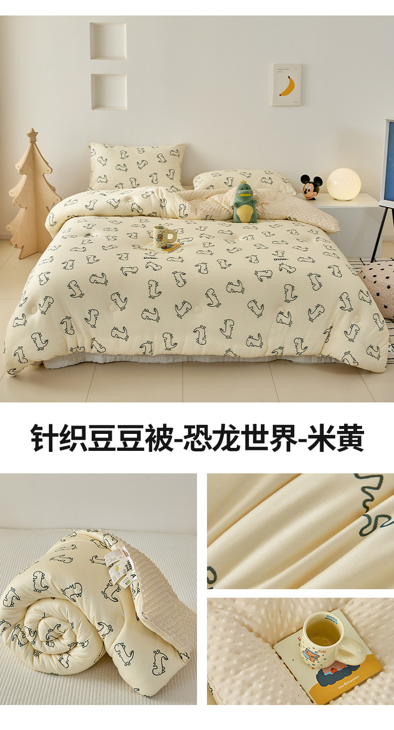 • 91家纺网 家纺一手货源 找家纺 木堇家居 2024新款针织棉豆豆被大豆四季被冬被被子被芯 针织豆豆被-恐龙世界-米黄