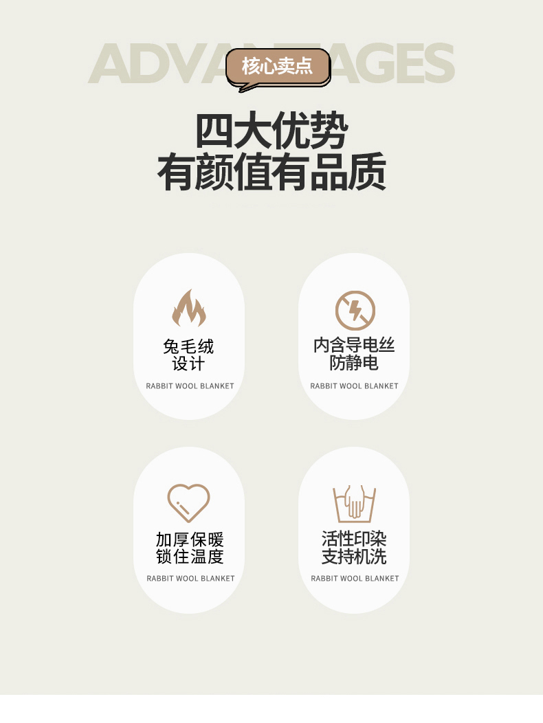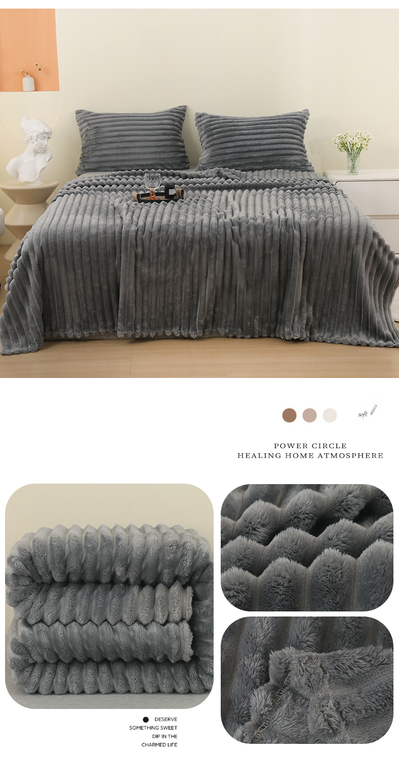 商品名称:欧喜璐 2024新款兔毛绒多功能毛毯高克重法莱绒牛奶绒贝贝绒毛毯 灰