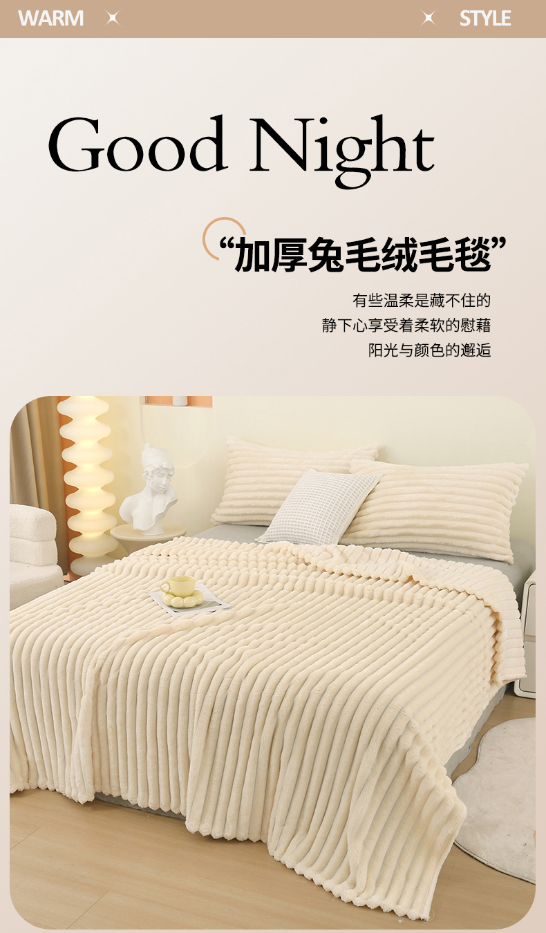 (总)欧喜璐 2025新款简约舒适纯色毛毯,白色