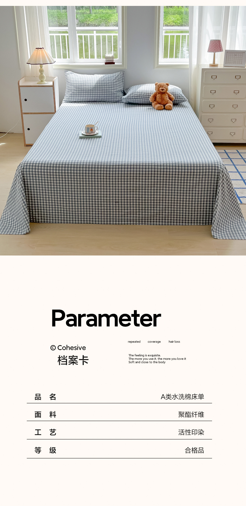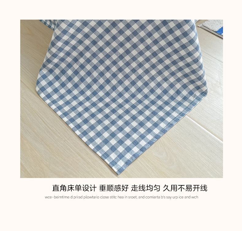 商品名称:韩巢家纺 2024新款简约格子纯色A类水洗棉床单枕套三件套 A类兰色格-床单