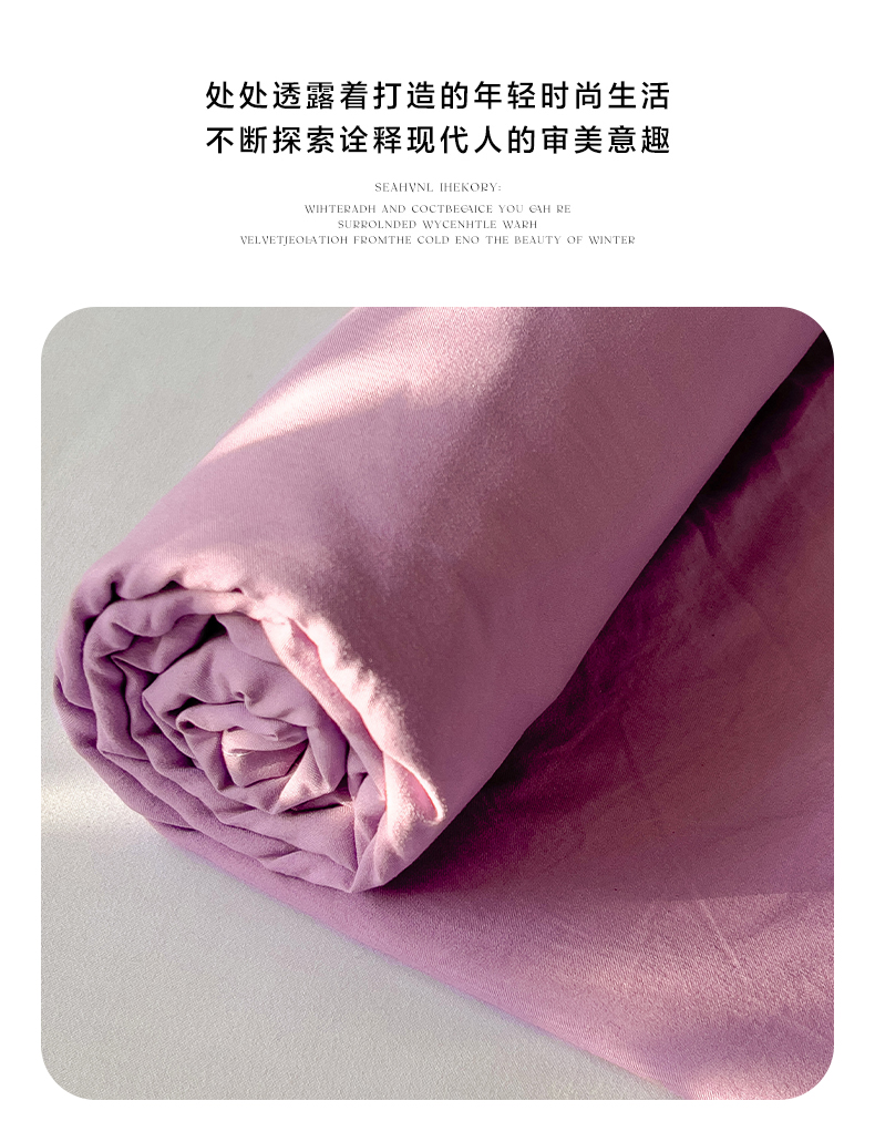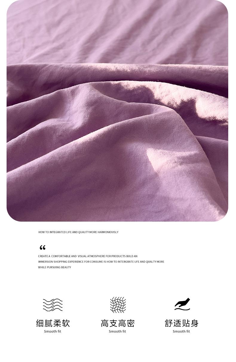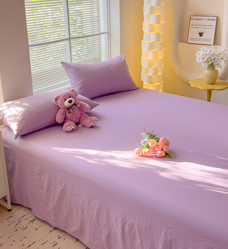 优选良品 2025新款韩版轻奢皱皱纱水洗棉拼色床单床笠四件套三件套-芋泥紫,芋泥紫