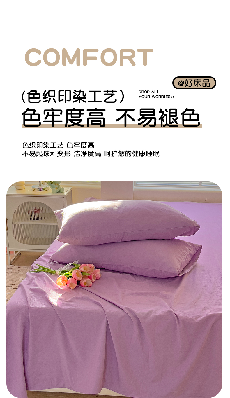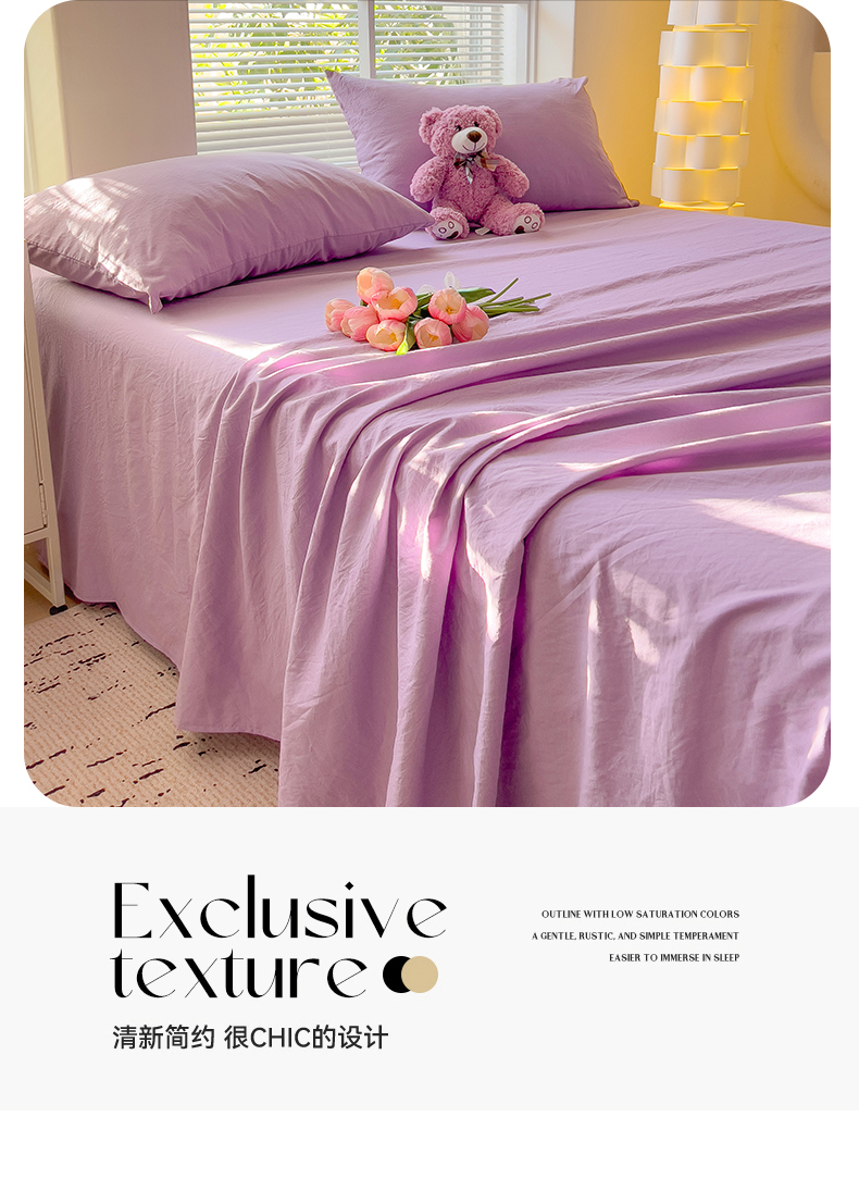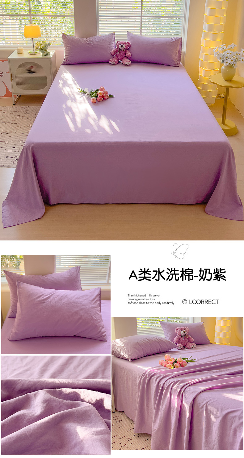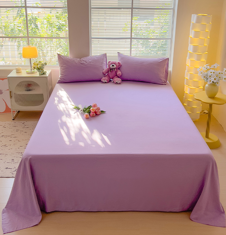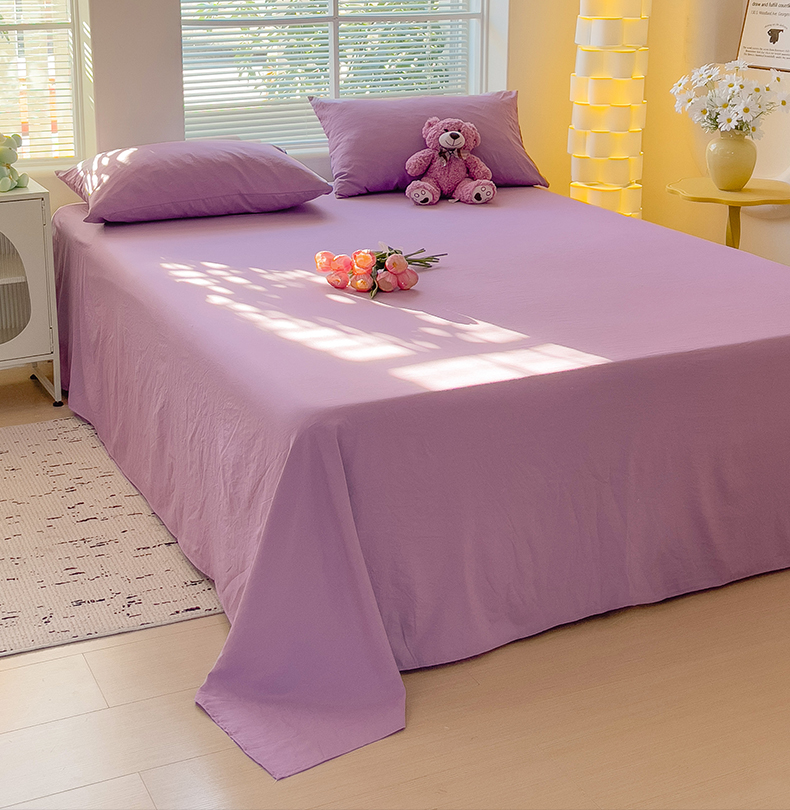 商品名称:优选良品 2025新款母婴级水洗棉床单三件套 水洗棉-奶紫