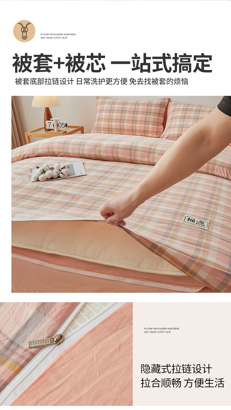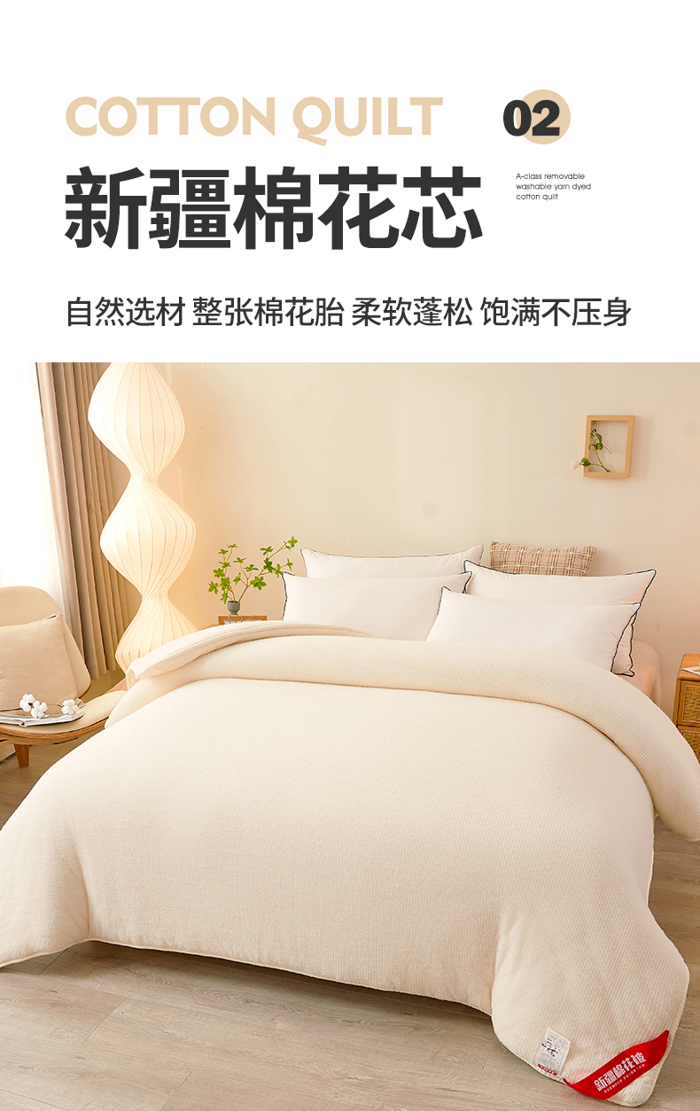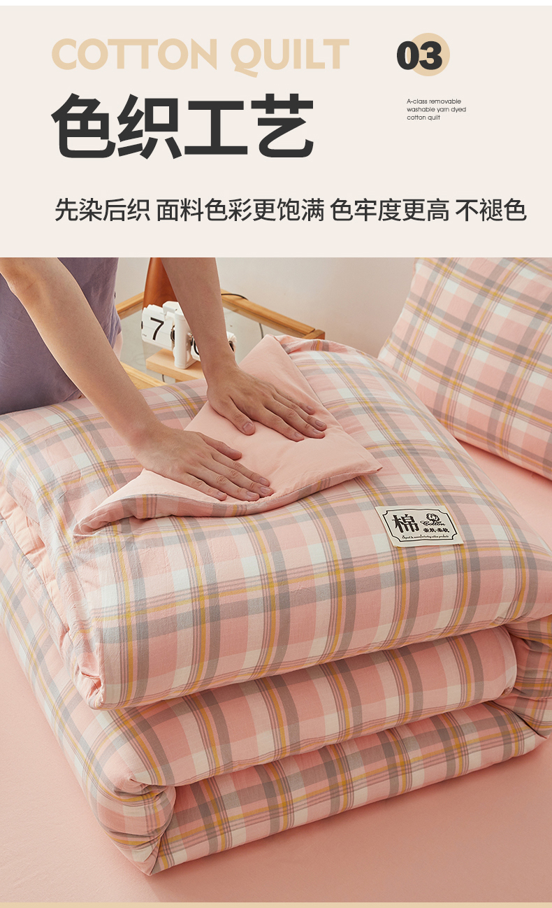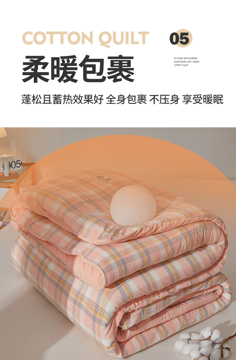 • 91家纺网 家纺一手货源 找家纺 晓时候 2025新款无印风亲肤水洗棉新疆棉花被可拆洗被子被芯冬被春秋被 简兮粉
