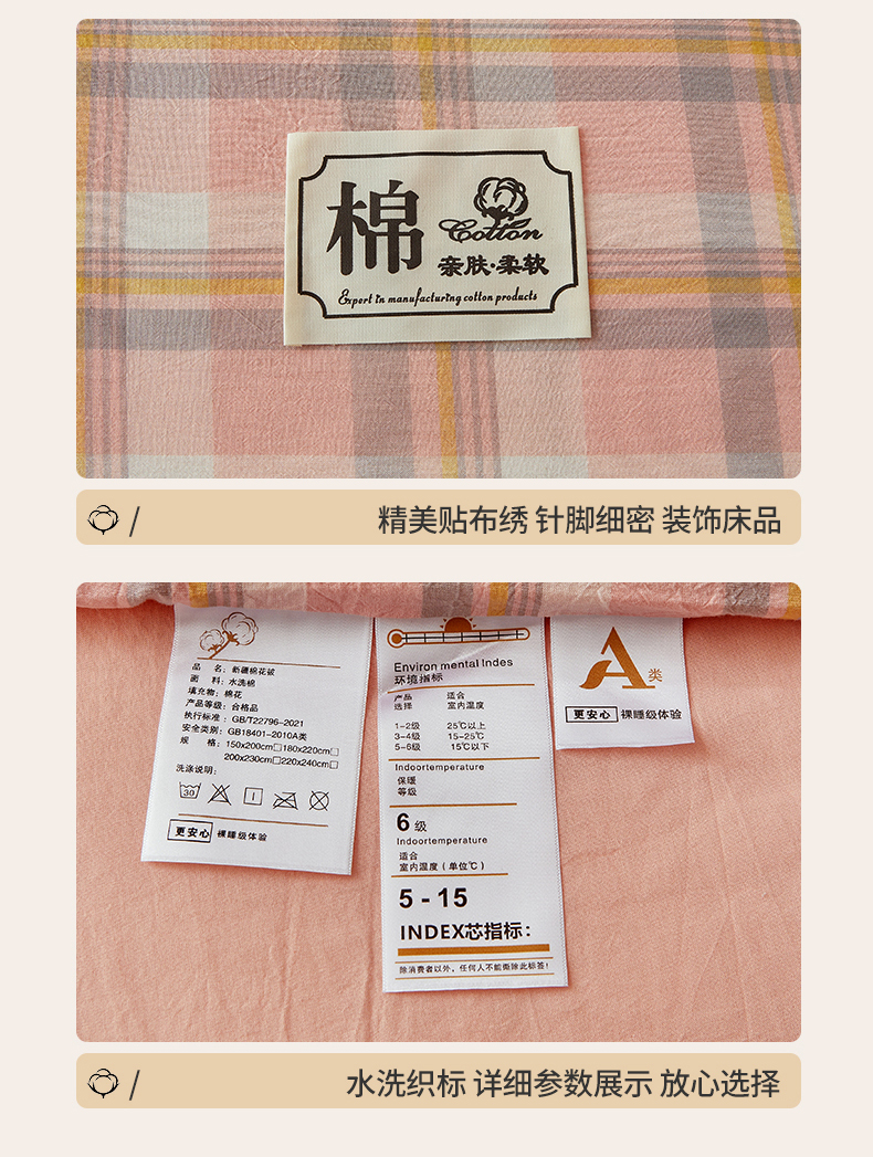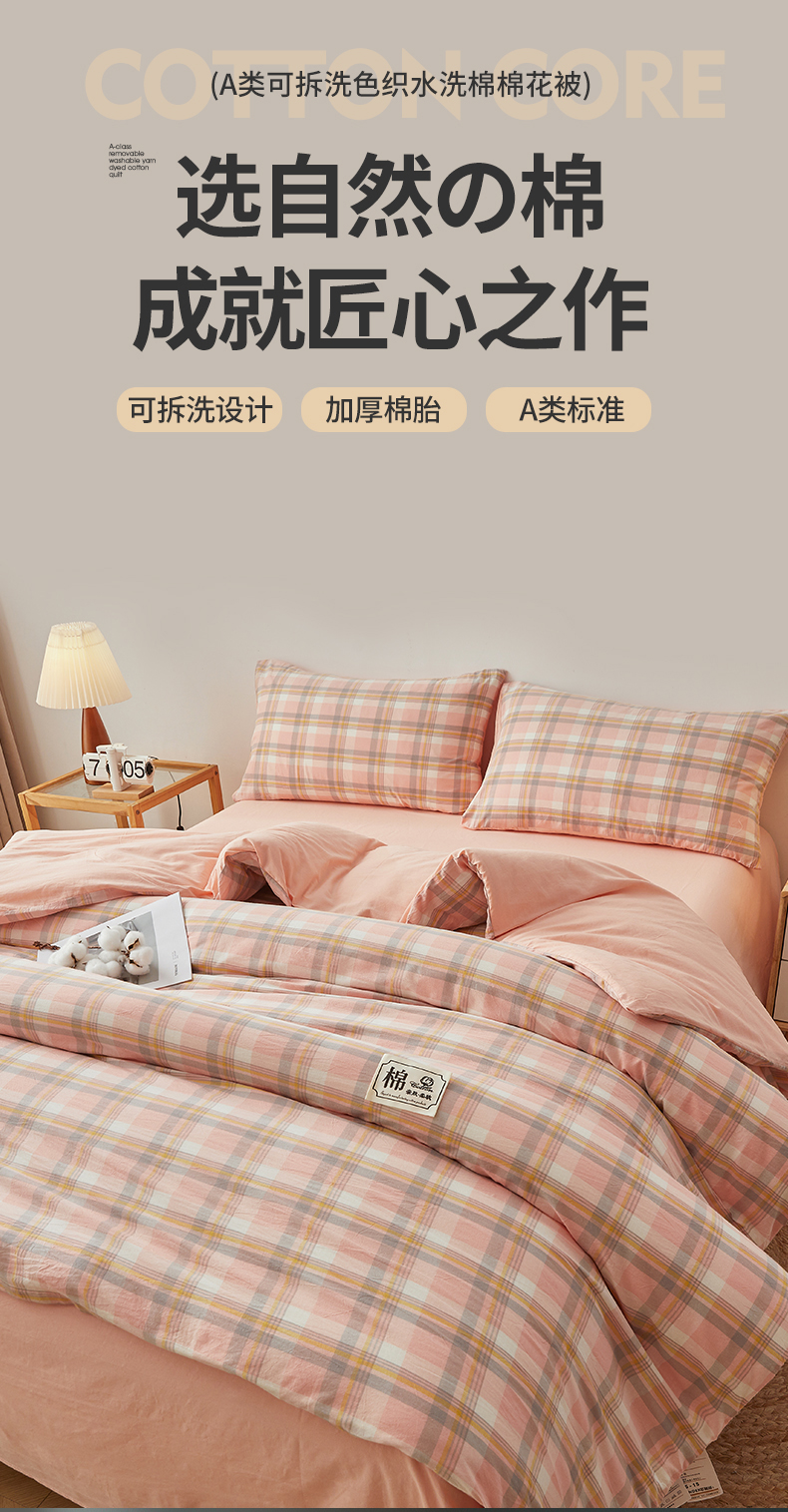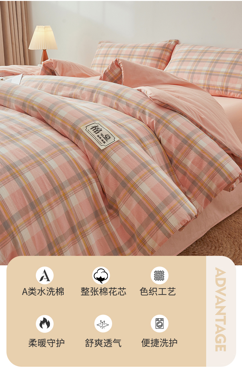 • 91家纺网 家纺一手货源 找家纺 晓时候 2025新款无印风亲肤水洗棉新疆棉花被可拆洗被子被芯冬被春秋被 简兮粉