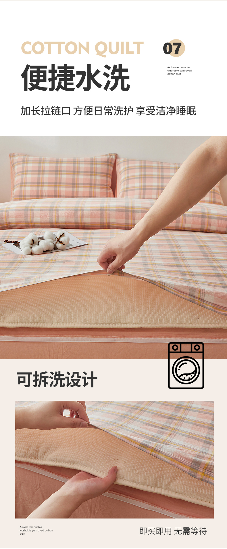 (总)晓时候 2025新款可拆洗新疆棉花床垫被褥子加厚冬被学生宿舍水洗棉床垫套-宿舍款,格韵-灰,格韵-粉,格韵-蓝,蜜粉大格,蜜粉小格,蜜桔格,青春格,森林绿,天蓝小格,烟灰大格
