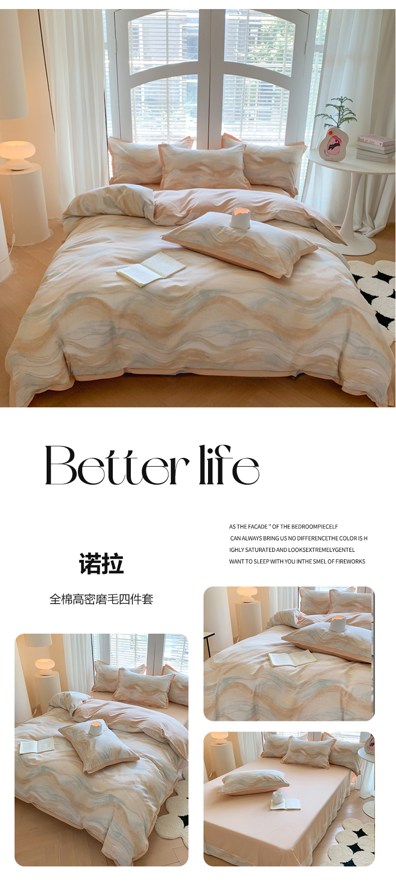当前位置: 91家纺网 > 商品网购 > 床品套件 > 四件套 > 全棉普通四件套 > 2024新款全棉磨毛印花系列四件套 诺拉