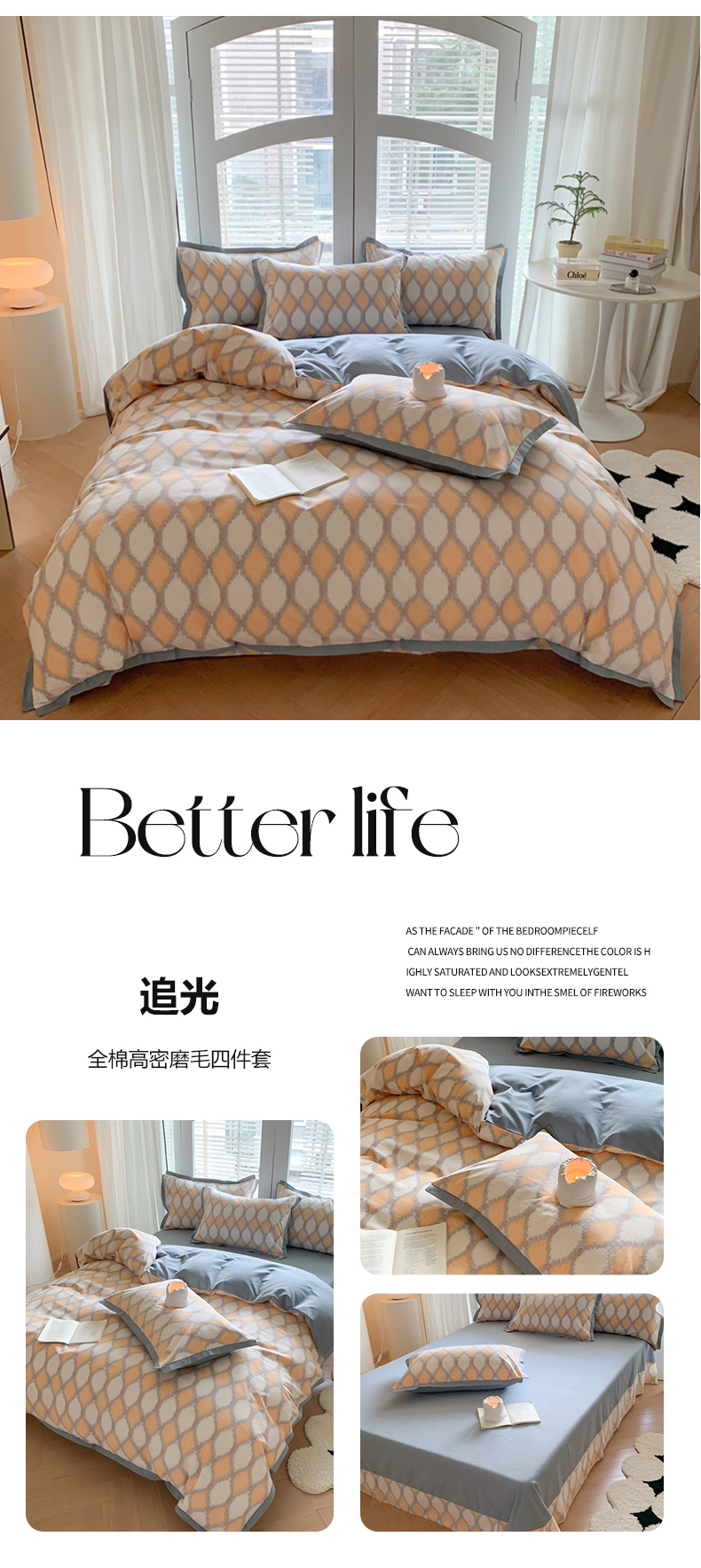 当前位置: 91家纺网 > 商品网购 > 床品套件 > 四件套 > 全棉普通四件套 > 2024新款全棉磨毛印花系列四件套 追光