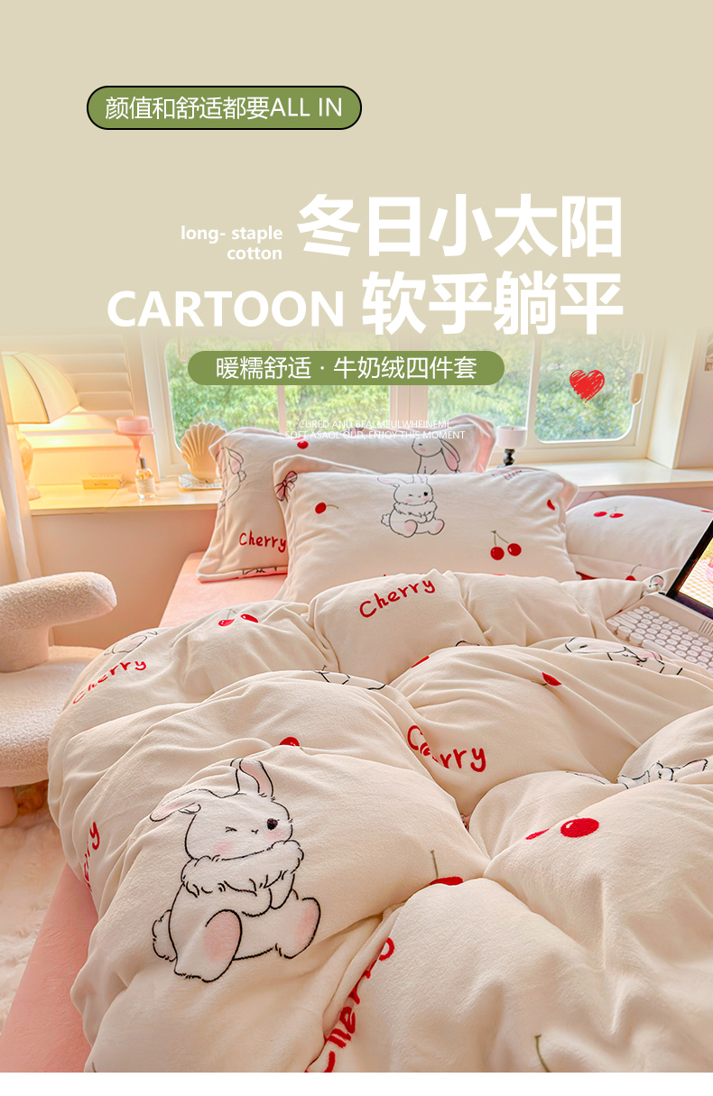 (总)呗旺鹿 2026新款全棉40支12868田园卡通小清新系列四件套,雅柔,蓝叶兔,软糖萌宠,三小只,童话乐园,小熊艺语,樱桃小象,H萝卜兔,L红茶兔兔,L欧包小奶兔,L浅糖兔叽