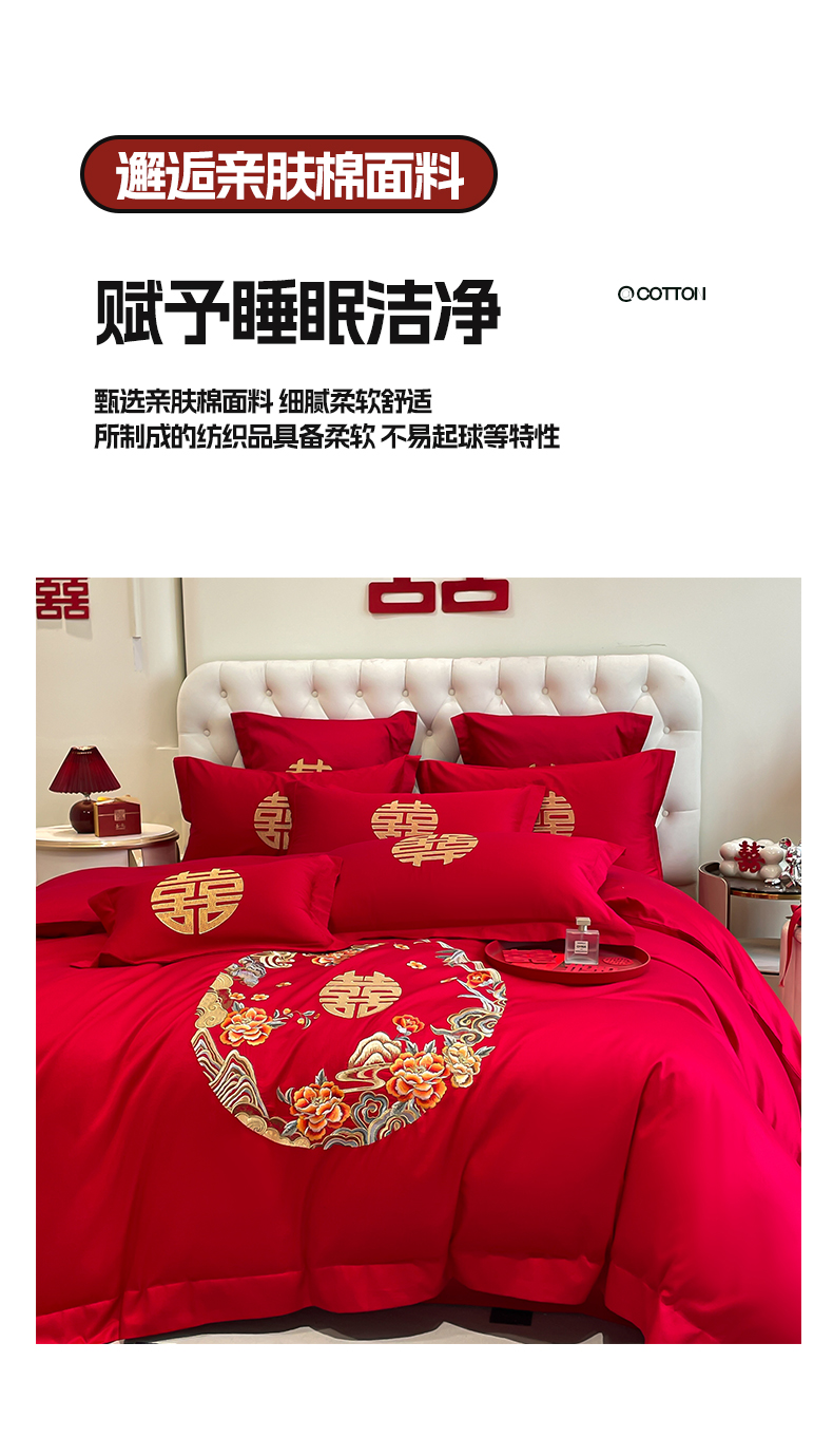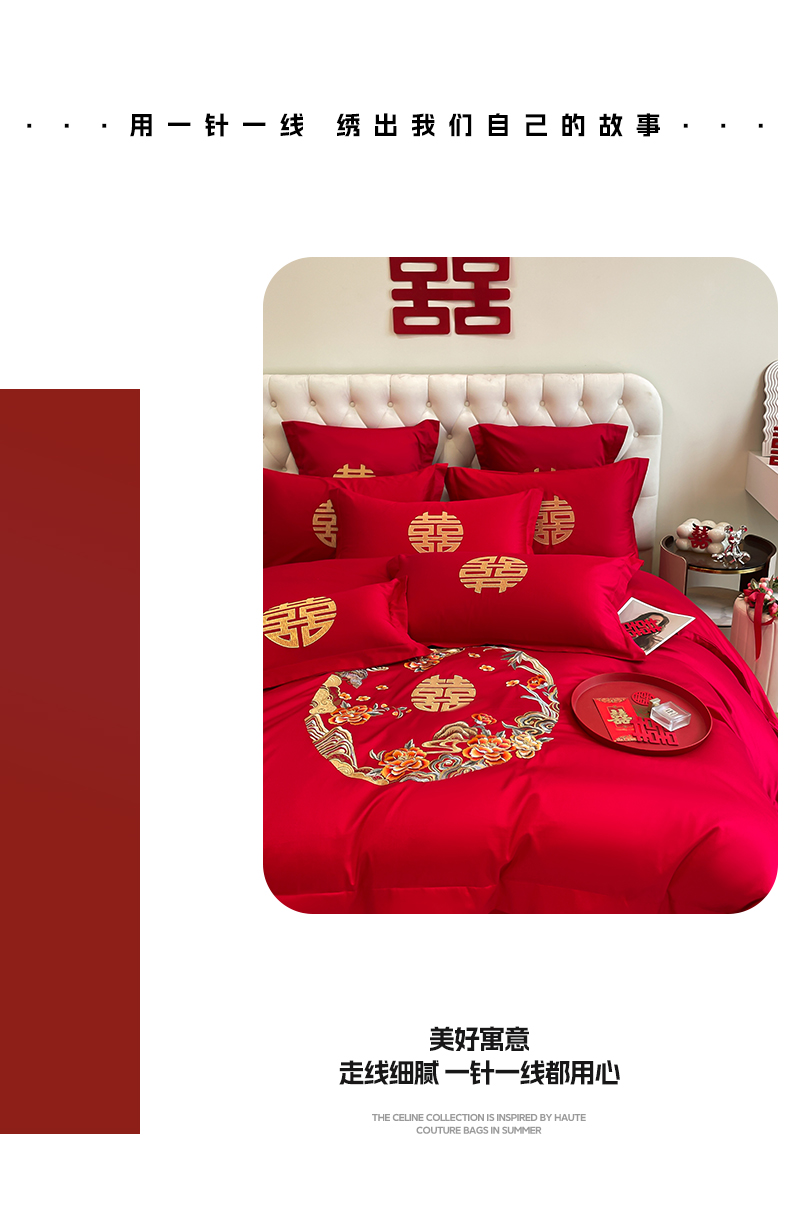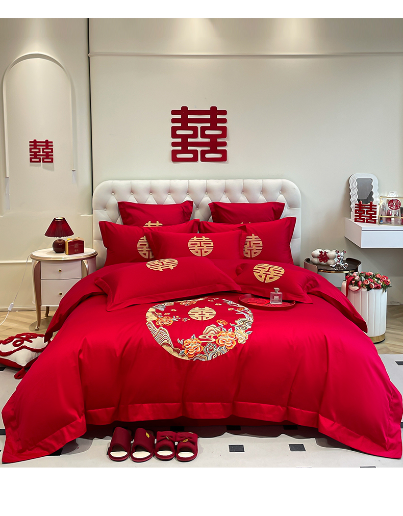 (总)欧乐蒂 2025新款设计师原创亲肤棉婚庆四件套,云喜东方,双喜临门,喜乐,喜事连连,爱恋,玫瑰爱恋,花开富贵,金枝玉叶,锦绣佳缘,龙姿风采