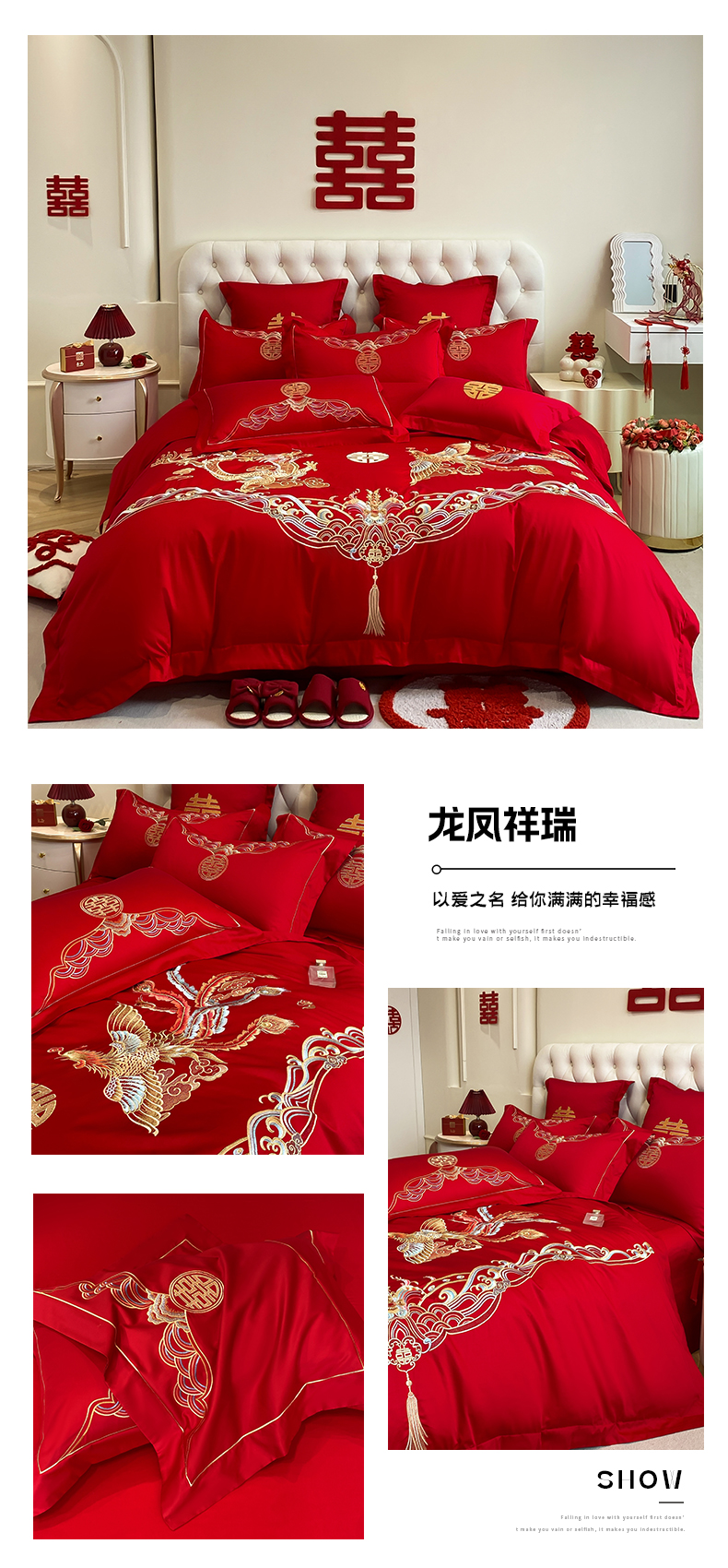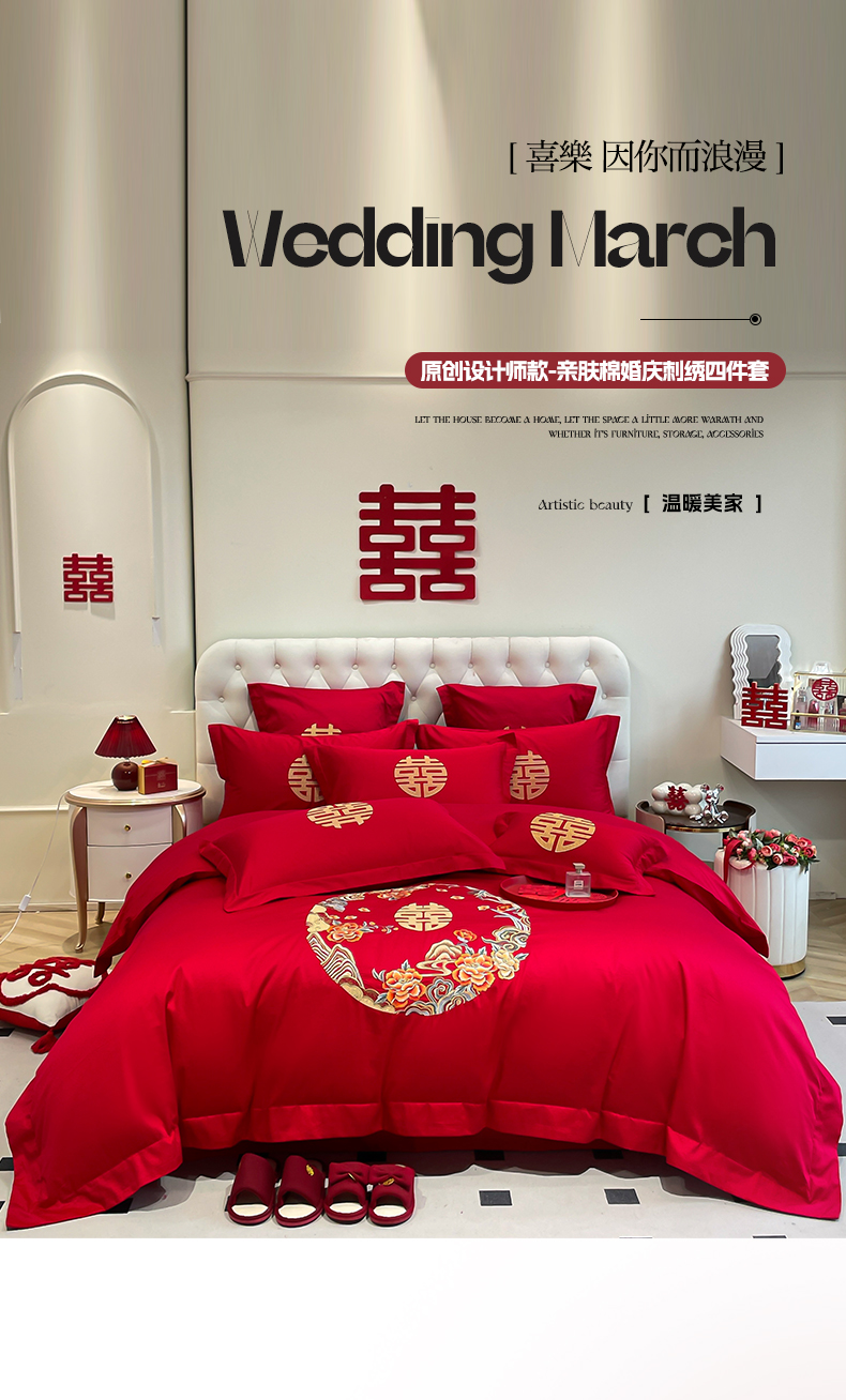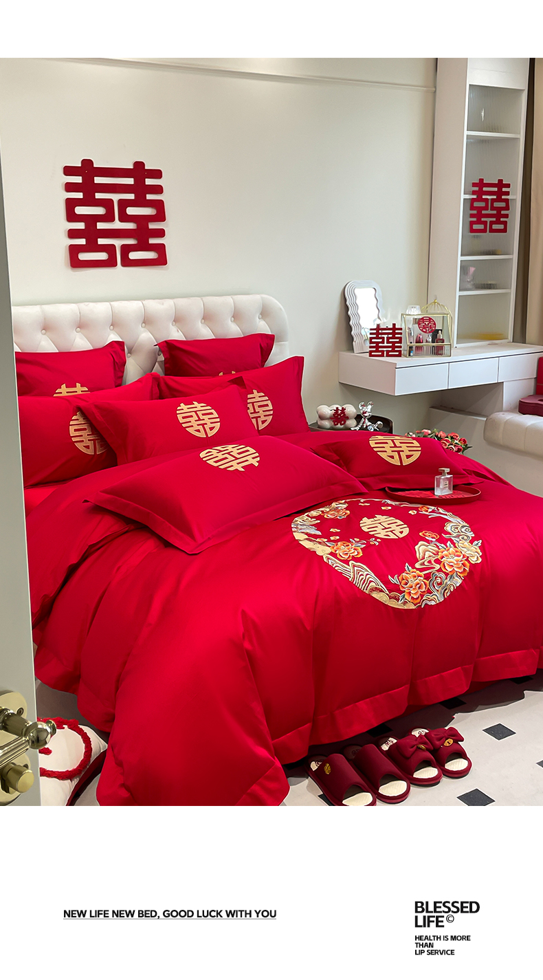 (总)欧乐蒂 2025新款设计师原创亲肤棉婚庆四件套,云喜东方,双喜临门,喜乐,喜事连连,爱恋,玫瑰爱恋,花开富贵,金枝玉叶,锦绣佳缘,龙姿风采