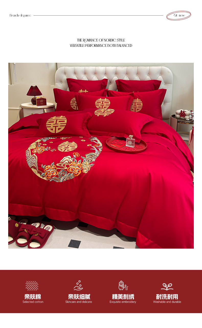 (总)欧乐蒂 2025新款全棉刺绣婚庆四件套,佳偶天成,龙凤和美,龙姿凤彩,玫瑰恋人,倾城之恋,双囍临门,甜蜜爱情,囍结良缘