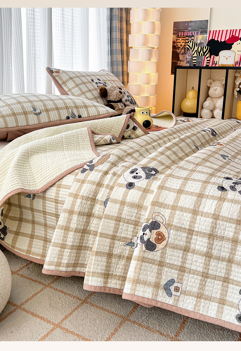 茉夕家纺 2024新款跑量款纯棉单面棉高温水洗床盖 可爱团子
