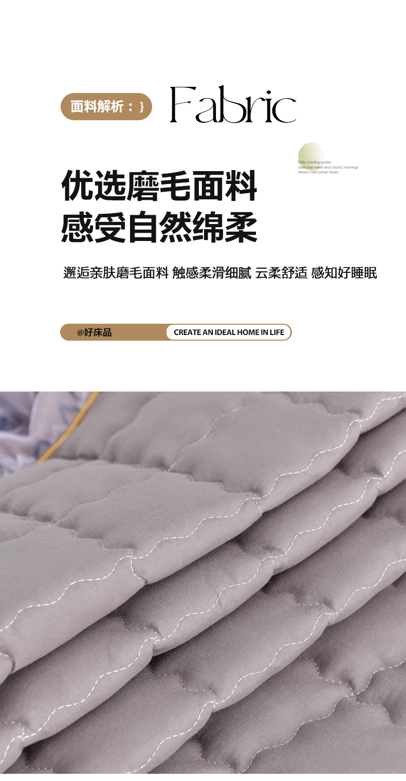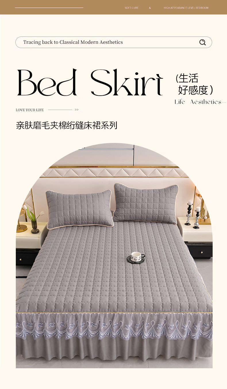 • 91家纺网 家纺一手货源 找家纺 艾裙海 2025新款90克磨毛夹棉绗缝床裙 浅灰色