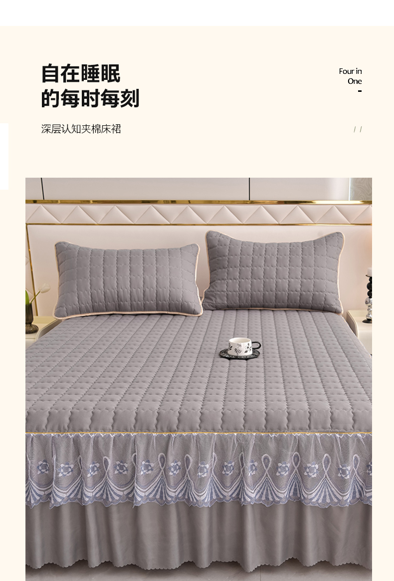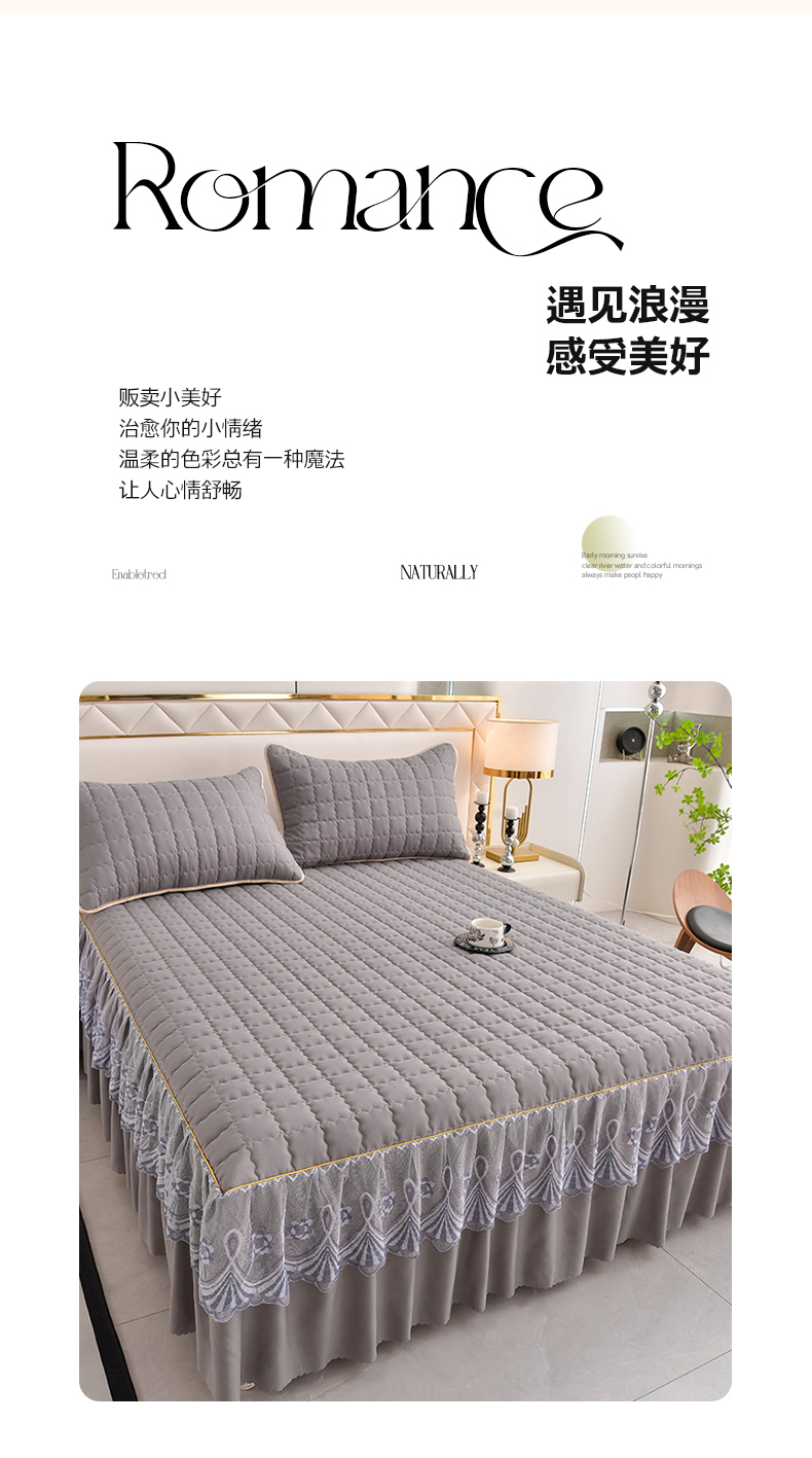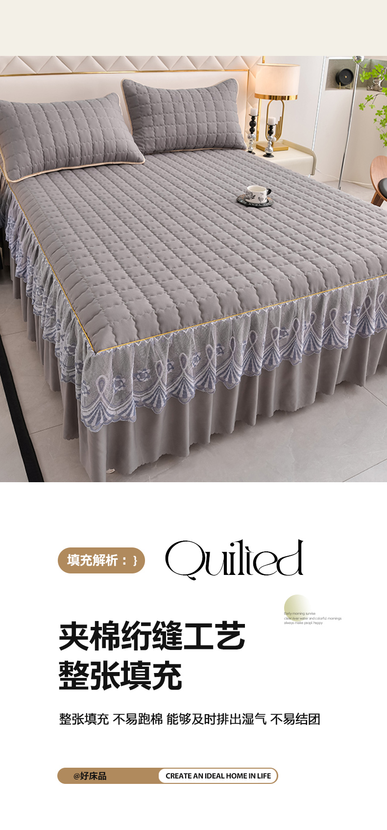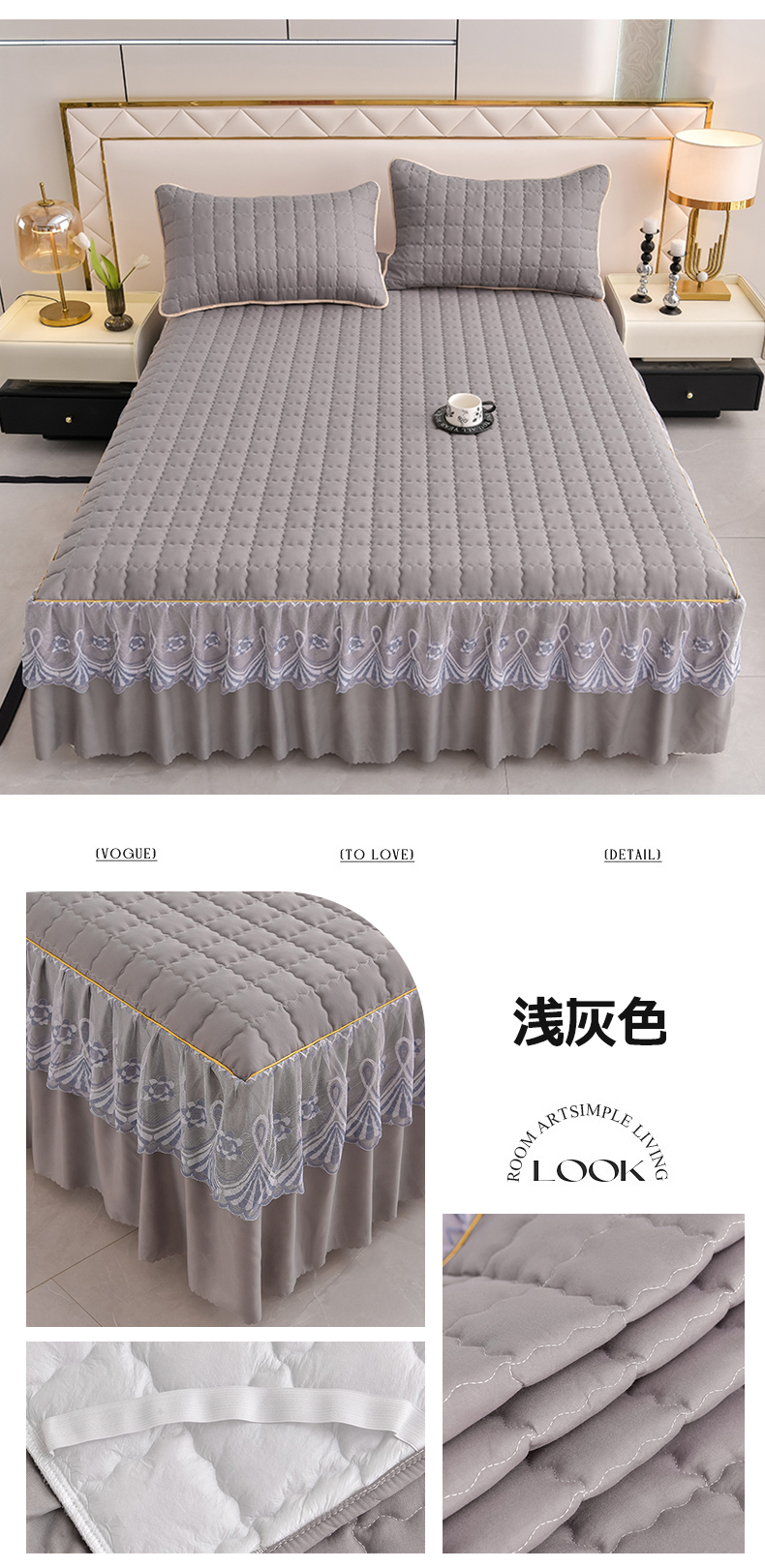 艾裙海 2025新款90克磨毛夹棉绗缝床裙 浅灰色