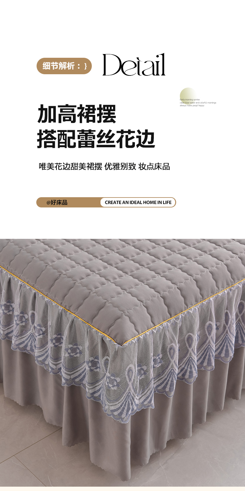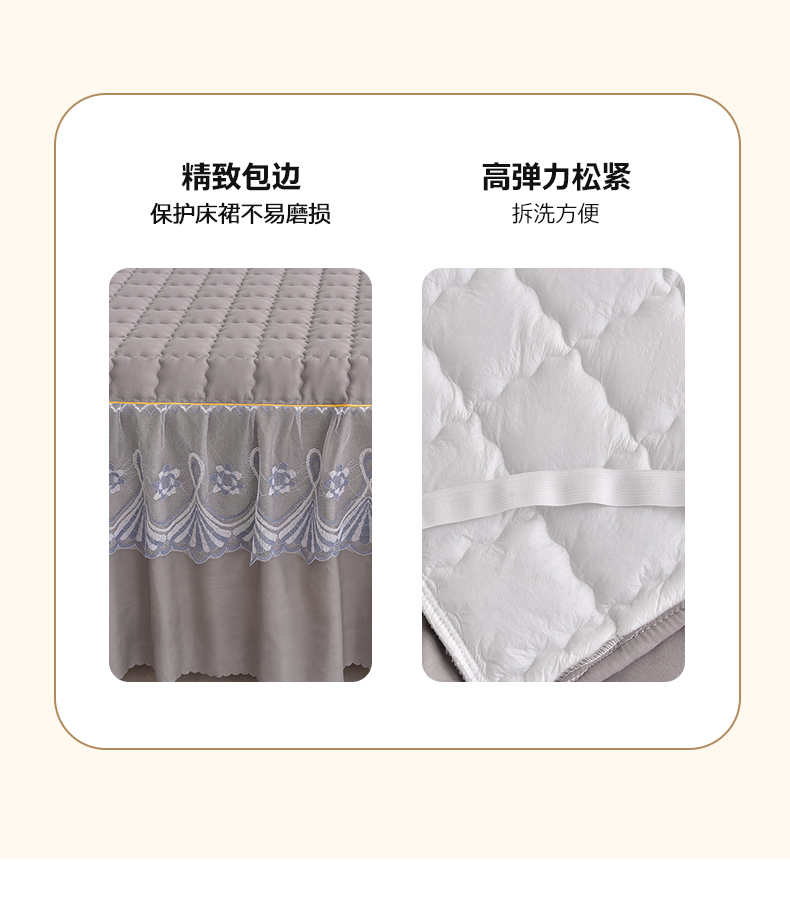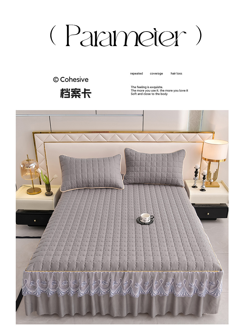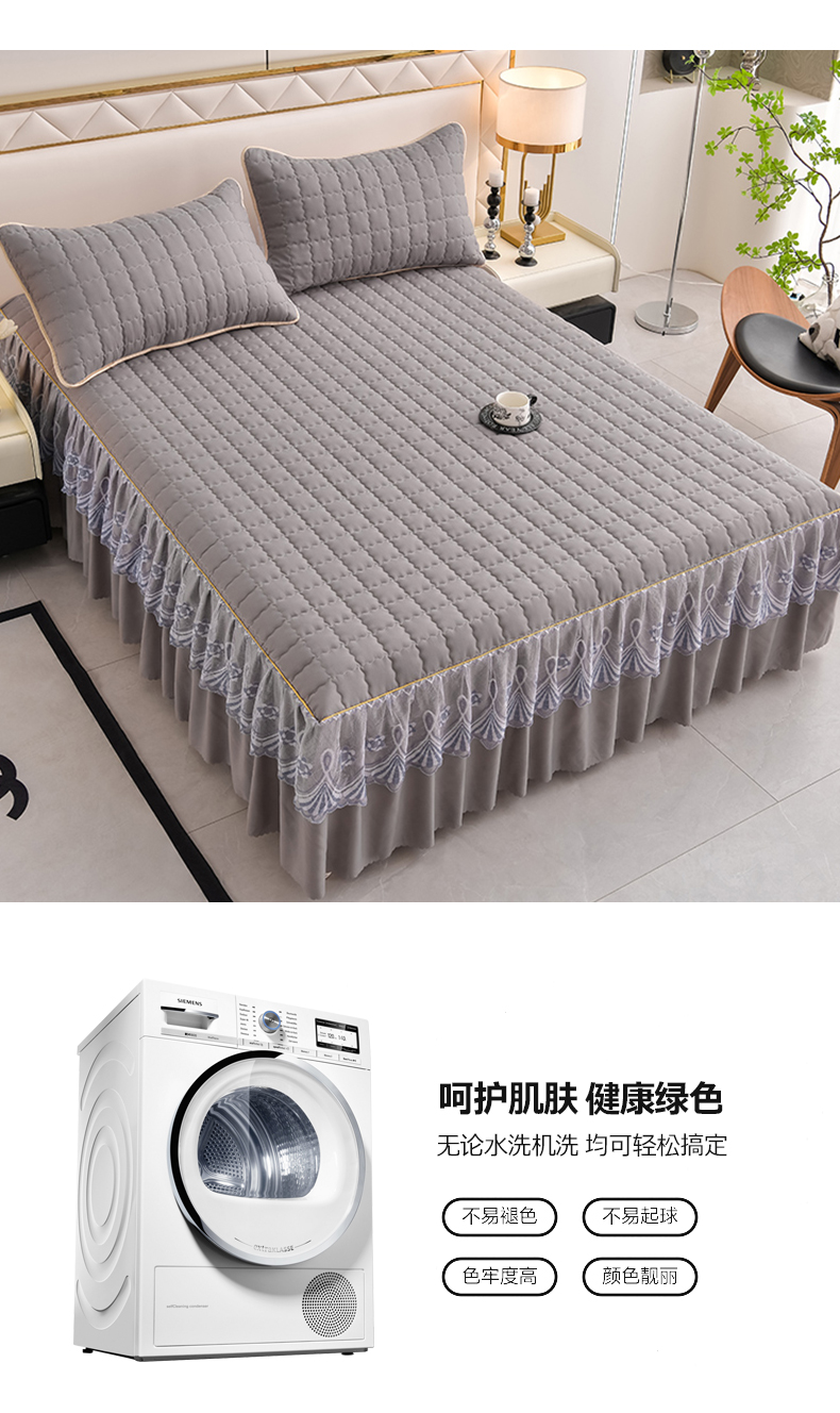 艾裙海 2025新款90克磨毛夹棉绗缝床裙 浅灰色