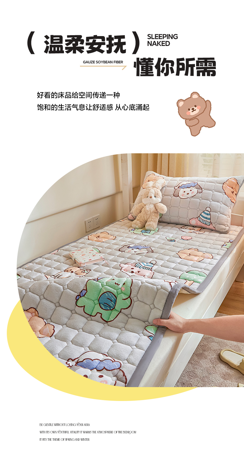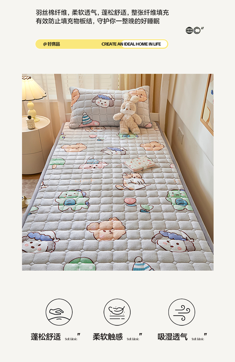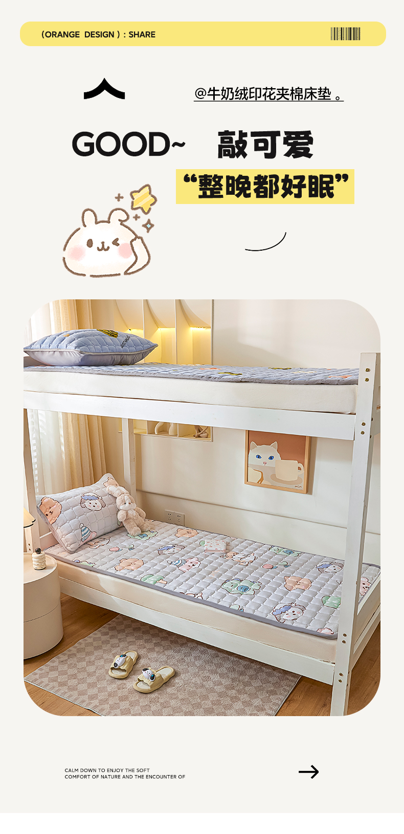 卡伦家纺 2025新款A类牛奶绒夹棉加厚床垫学生宿舍单人床垫 摩尔庄园