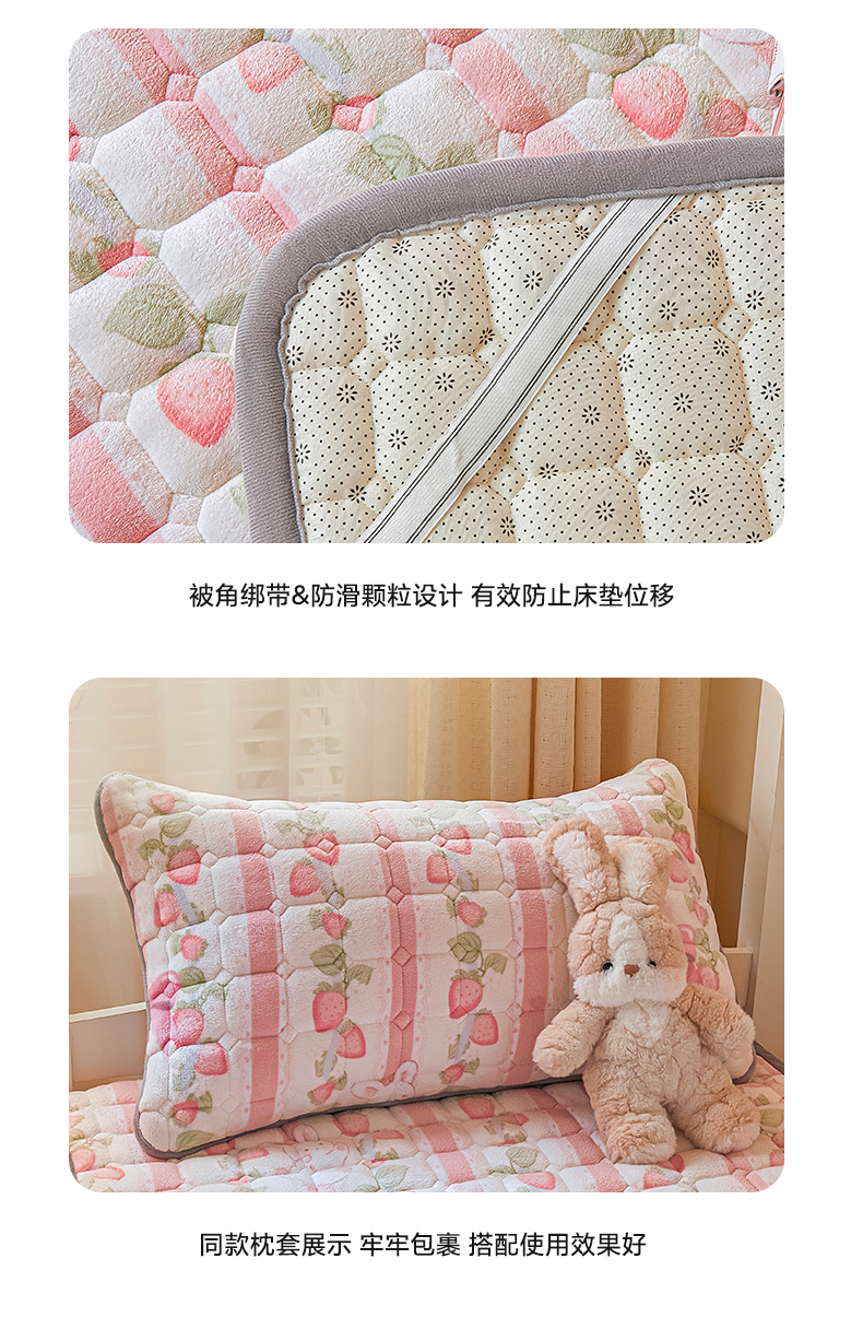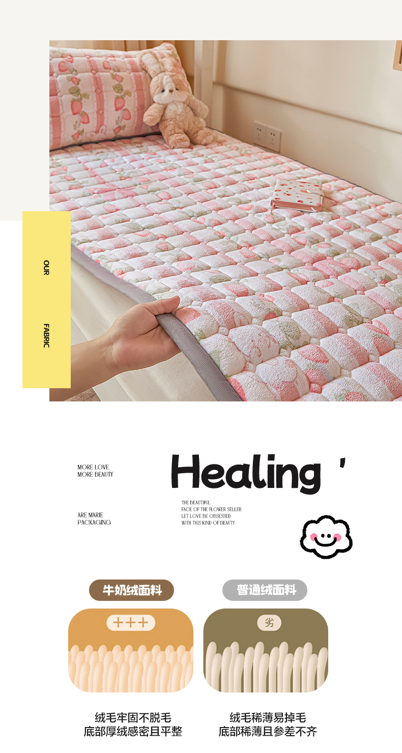 (总)卡伦家纺 2025新款A类牛奶绒夹棉加厚床垫单人双人床垫保护垫,爱的印记,爱心熊,安妮宝贝,宝石蓝,缤纷小可爱,草莓之恋,呆萌恐龙,高级灰,高雅紫,红豆沙,花间蘑力,花开一夏,花之谷,金叶飘香,开心乐园,梦想创造家,抹茶绿,南瓜灰灰,南瓜派,青春曲调,轻羽飞扬,甜蜜爱心,甜心小熊,香槟金,心相印,星幻恐龙,星梦露,熊熊世界,樱桃花语,云端漫步