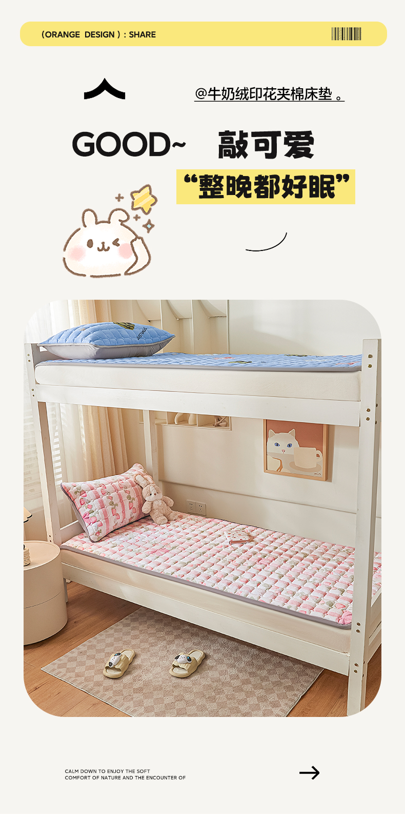 商品名称:卡伦家纺 2025新款A类牛奶绒夹棉加厚床垫学生宿舍单人床垫 青春曲调