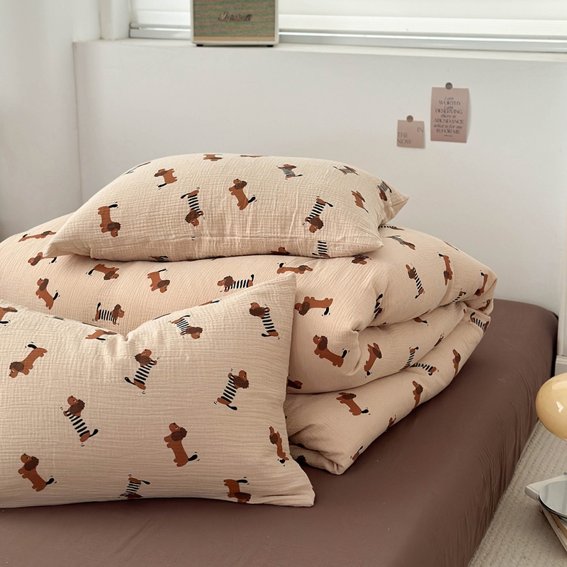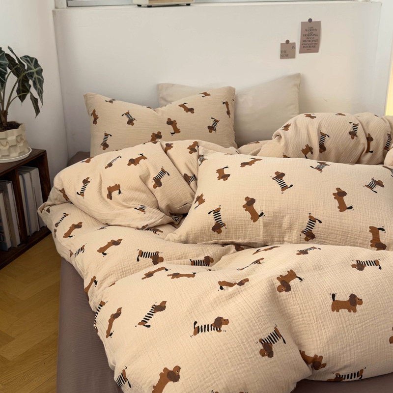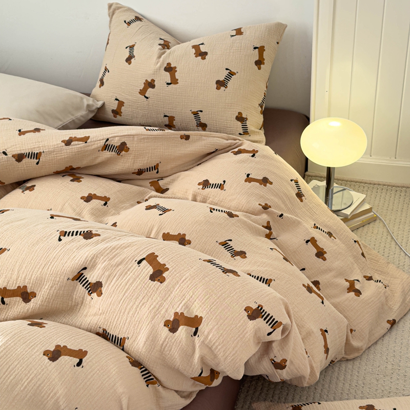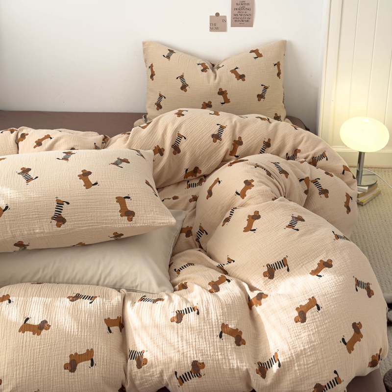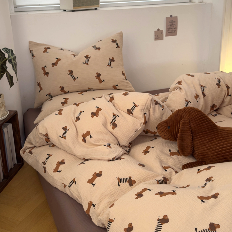 洋铭区(原狠狠爱) 2024新款皱皱纱四件套 腊肠狗狗