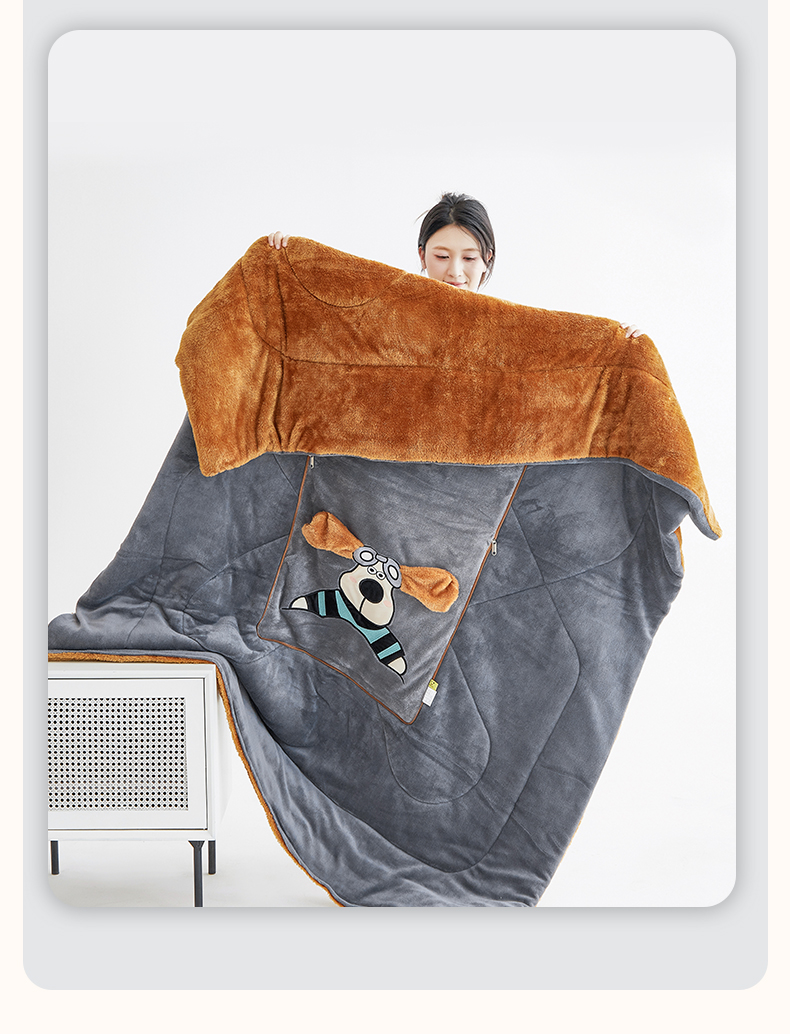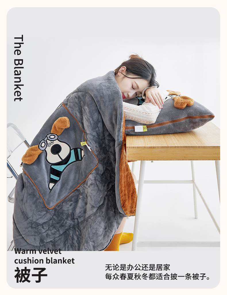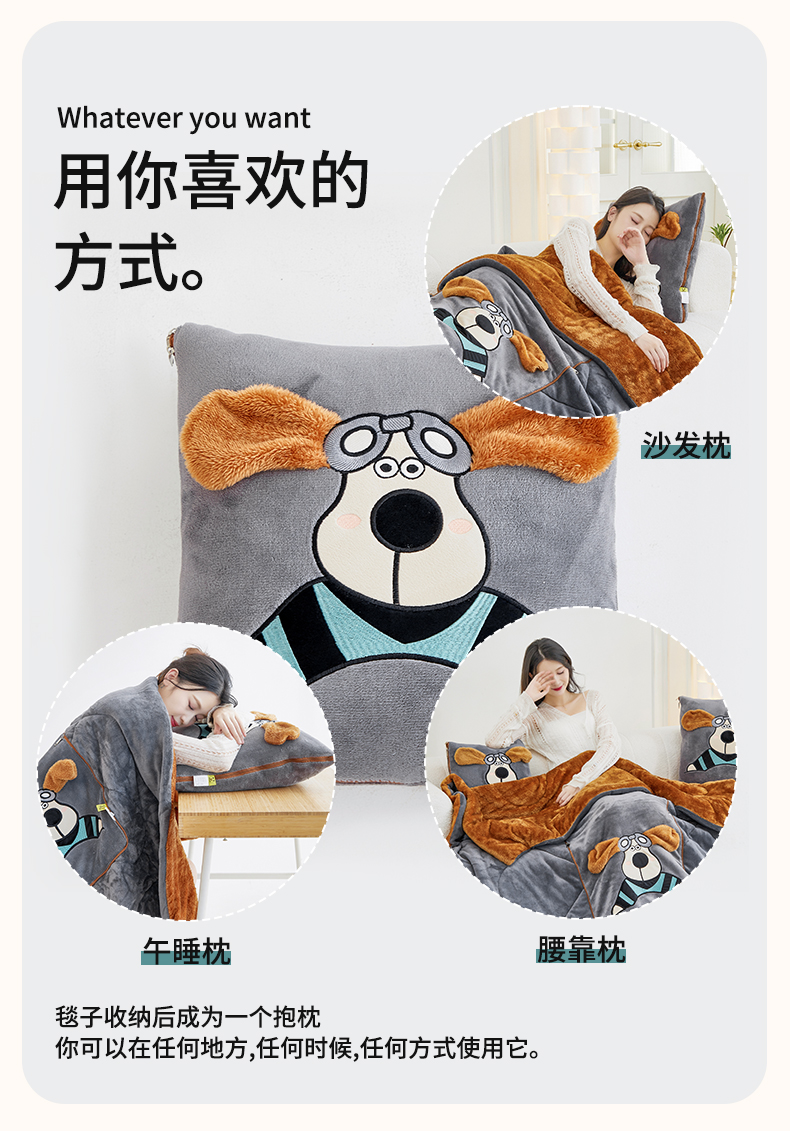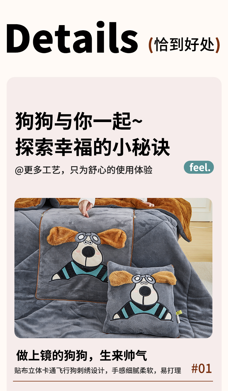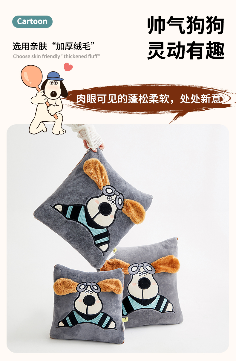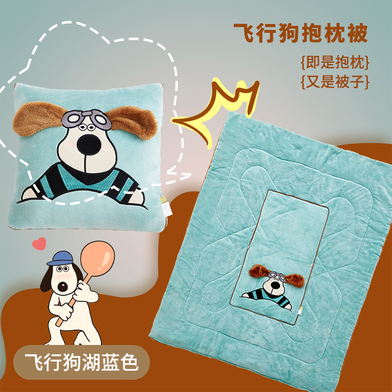 商品名称:古本家居 2024新款飞行狗贴布立体卡通刺绣抱枕被 飞行狗深灰色