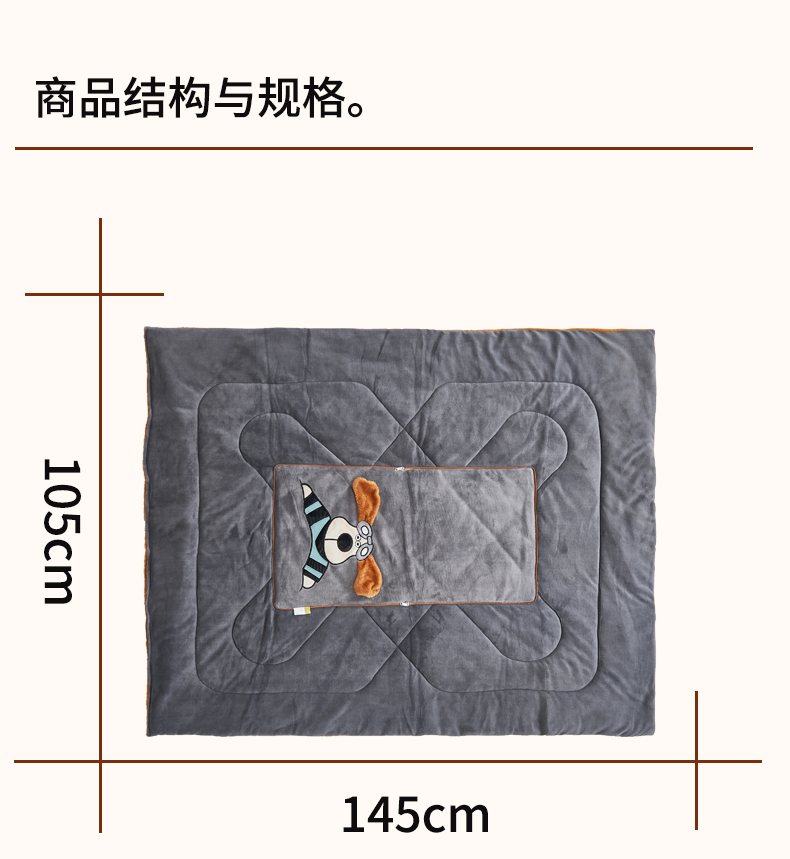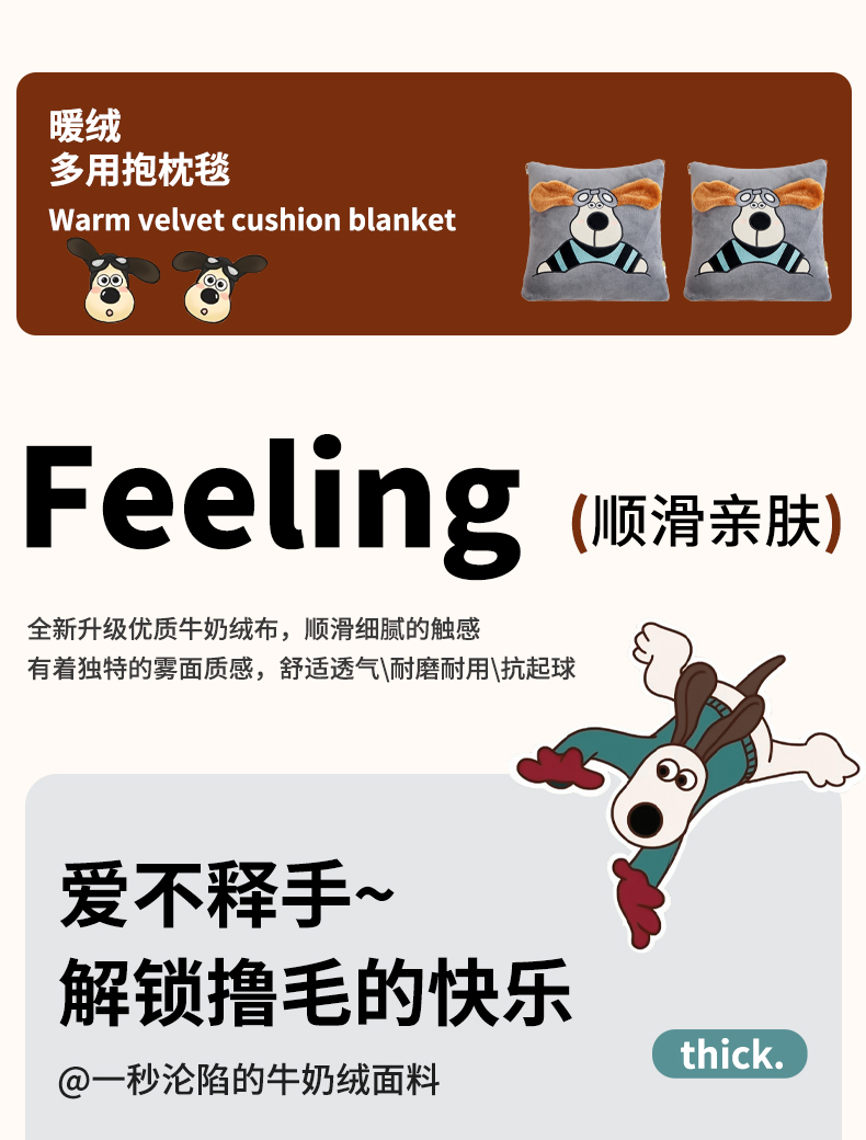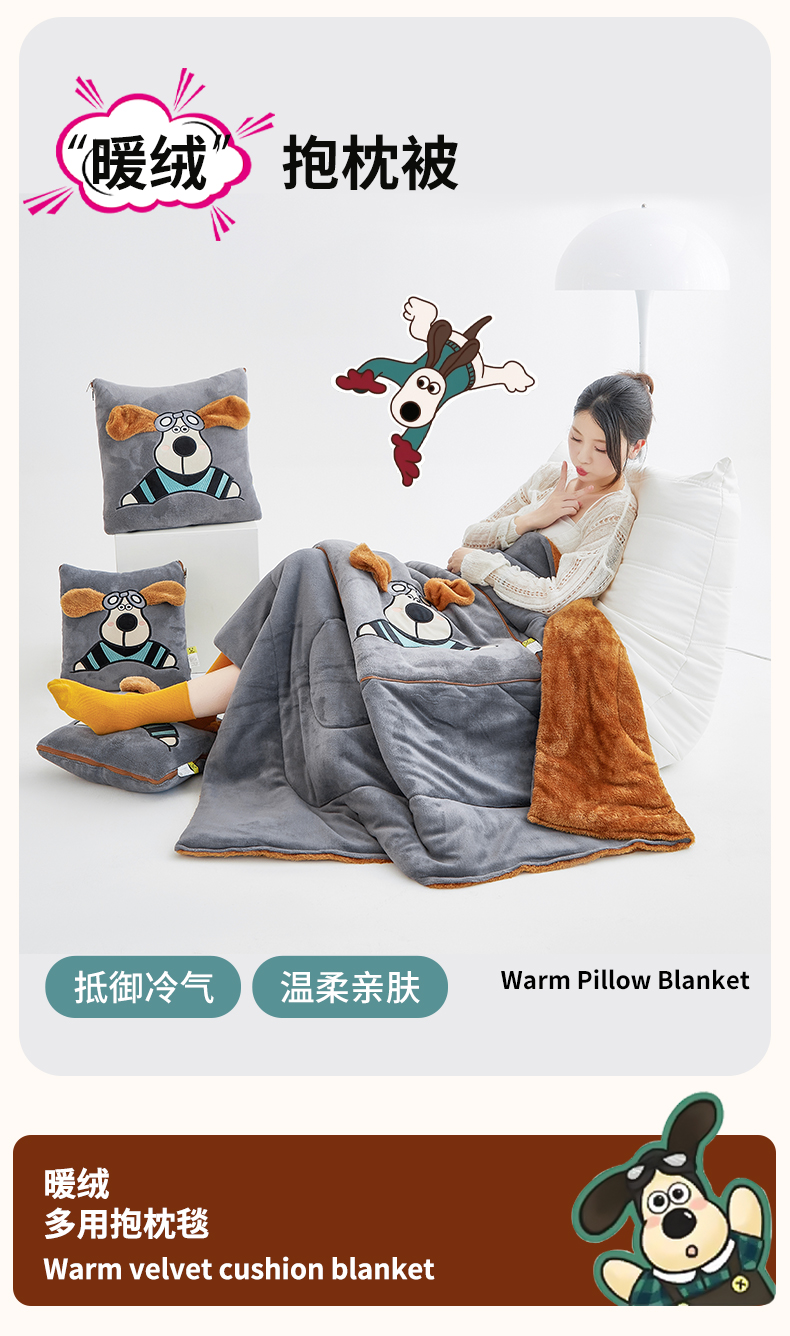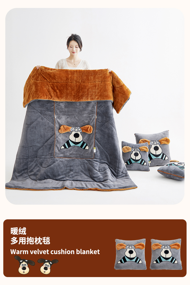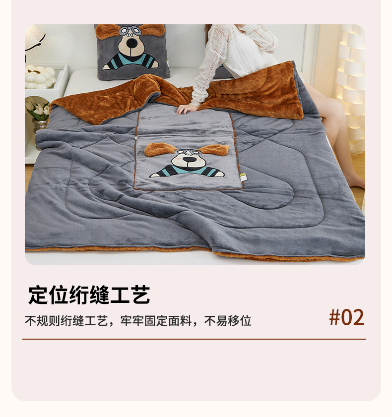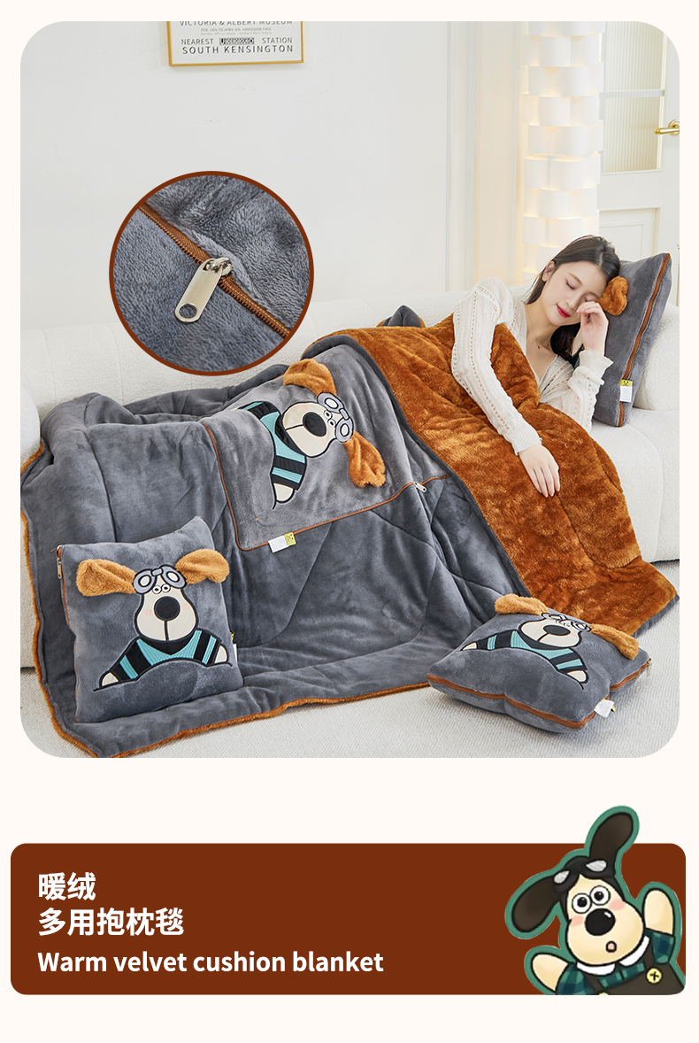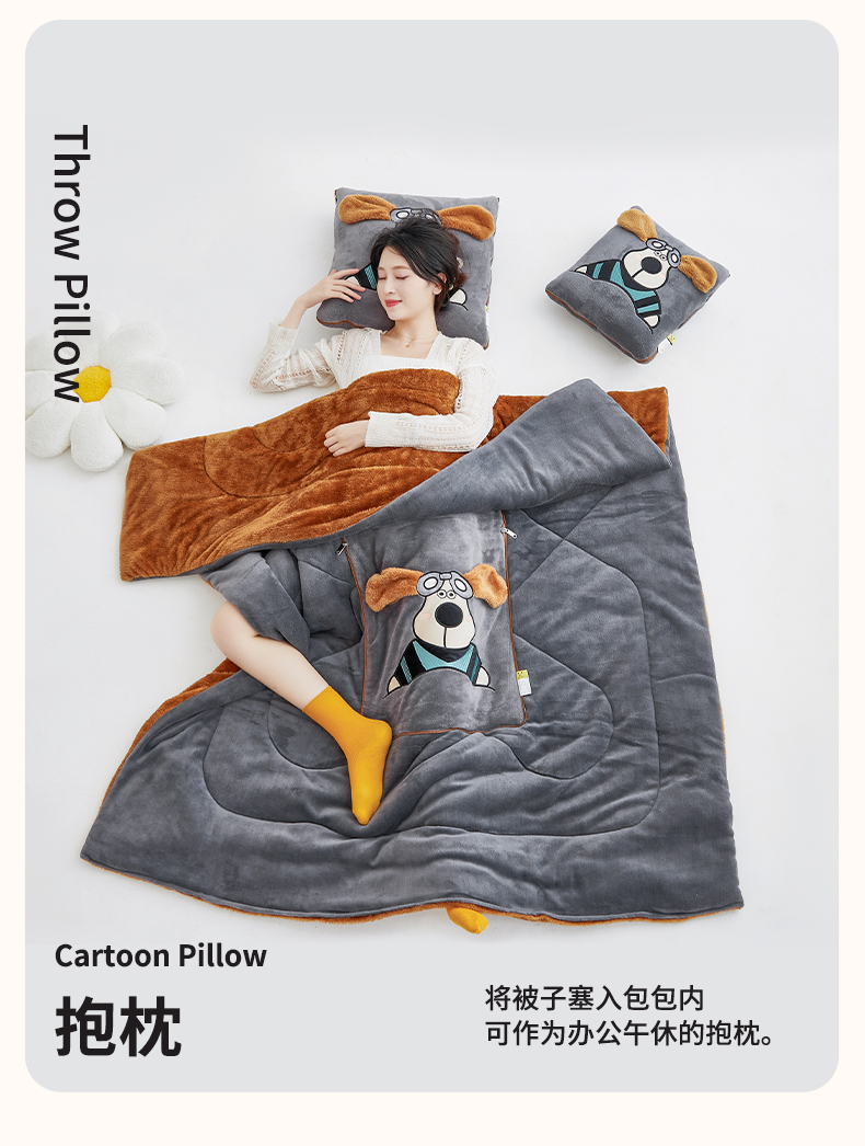 商品名称:古本家居 2024新款飞行狗贴布立体卡通刺绣抱枕被 飞行狗深灰色