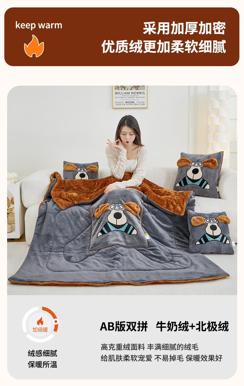 (总)古本家居 2025新款牛奶绒毛巾绣狗狗熊熊款抱枕被,牛奶绒粉波点小白狗,牛奶绒粉格腊肠狗,牛奶绒黑格腊肠狗,牛奶绒红条帽子熊,牛奶绒咖条帽子熊,牛奶绒蓝波点小白狗,牛奶绒蓝格腊肠狗