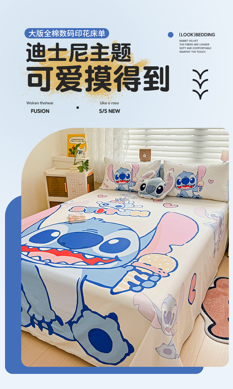 名兮家居 2024新款大版经典奥特曼-三丽鸥全棉床单 【含防伪标】 史迪小怪