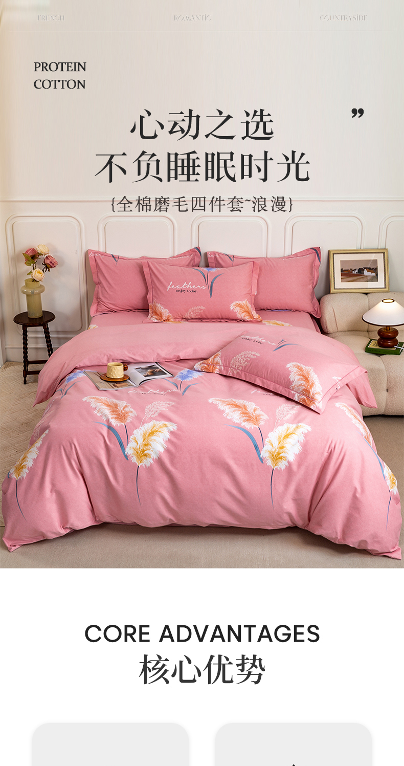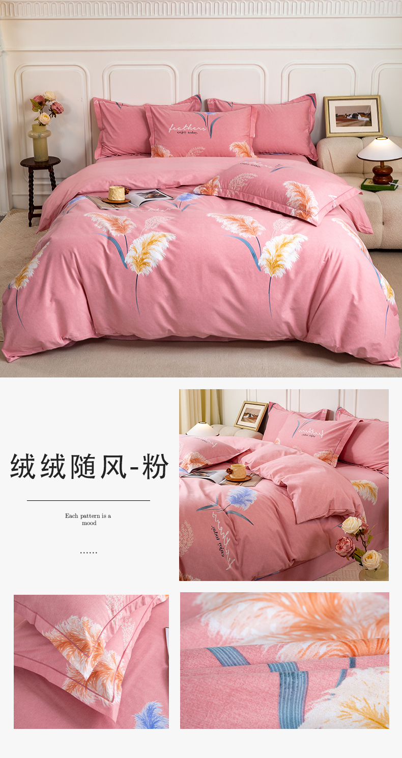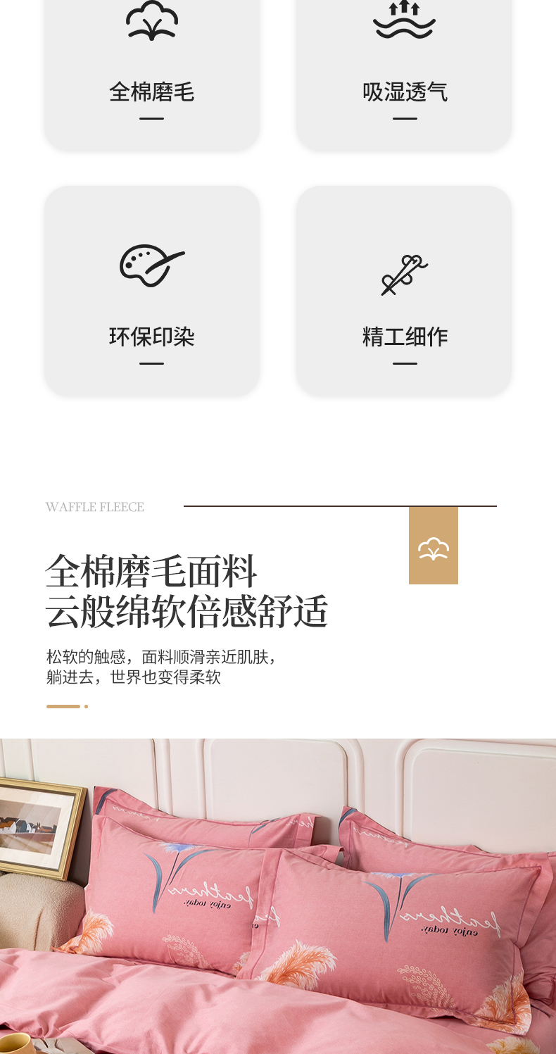 当前位置: 91家纺网 > 商品网购 > 床品套件 > 四件套 > 全棉普通四件套 > 威布斯 2025新款加厚纯棉全棉磨毛三件套四件套 绒绒随风-粉