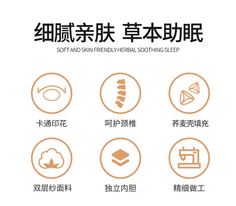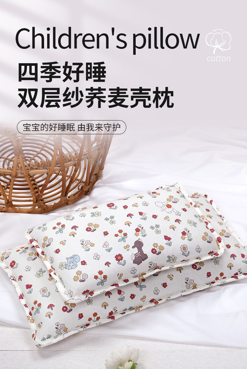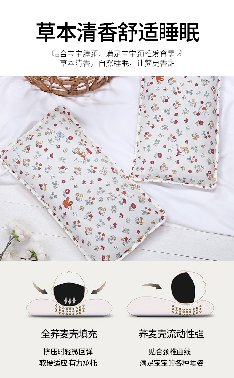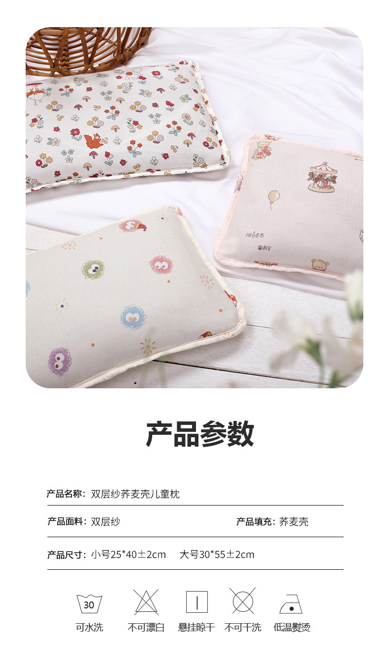 商品名称:(总)明星枕业 2024新款双层纱儿童卡通荞麦枕幼儿园宝宝枕头枕芯