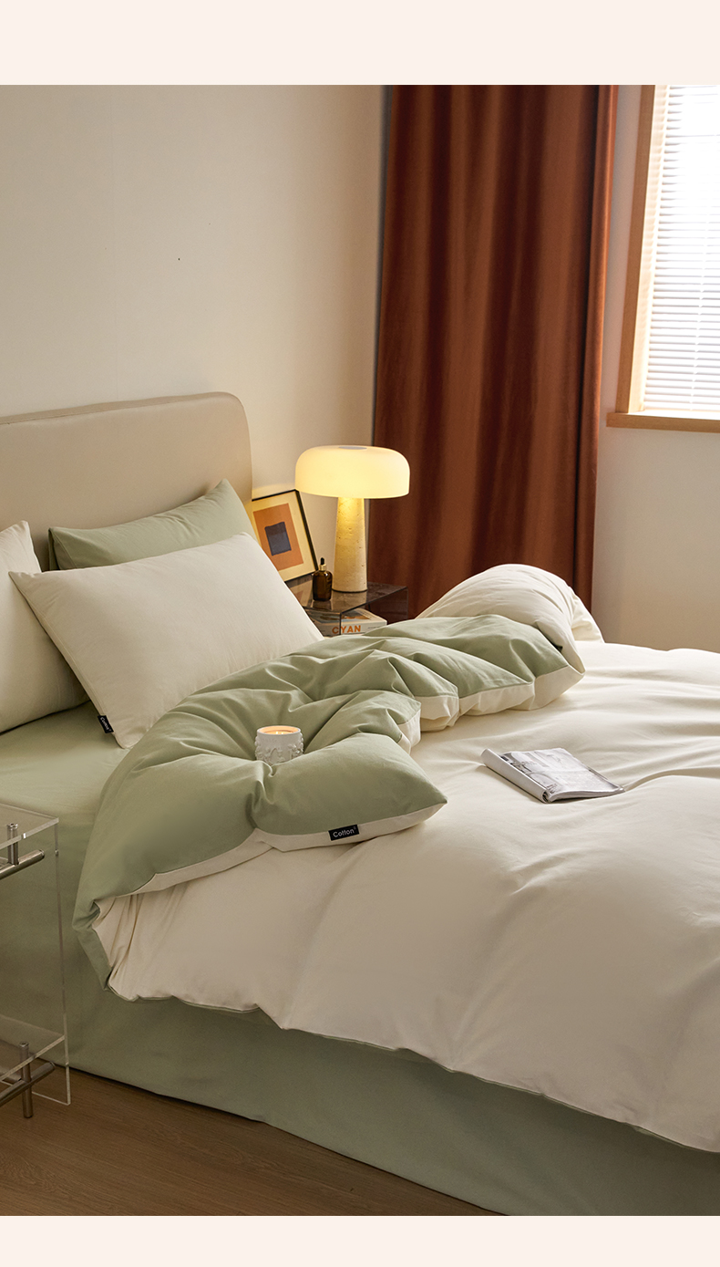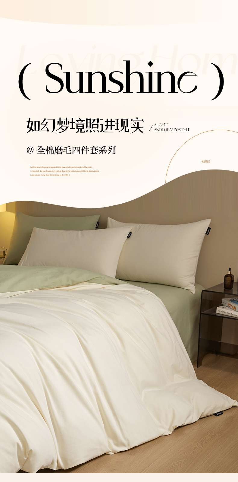 当前位置: 91家纺网 > 商品网购 > 床品套件 > 四件套 > 全棉普通四件套 > 涵宸家纺 2024新款全棉磨毛四件套纯厚系列(轻)-四件套 纯厚(奶白+绿)