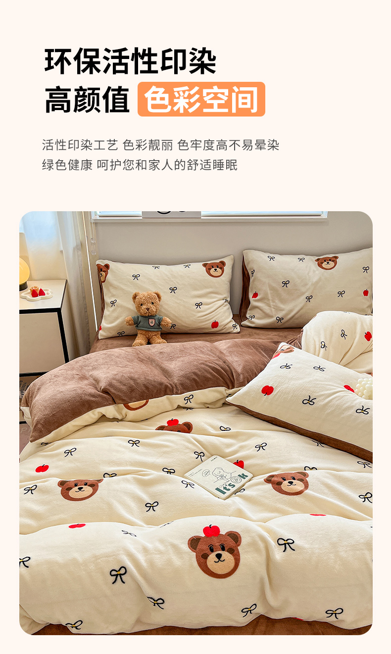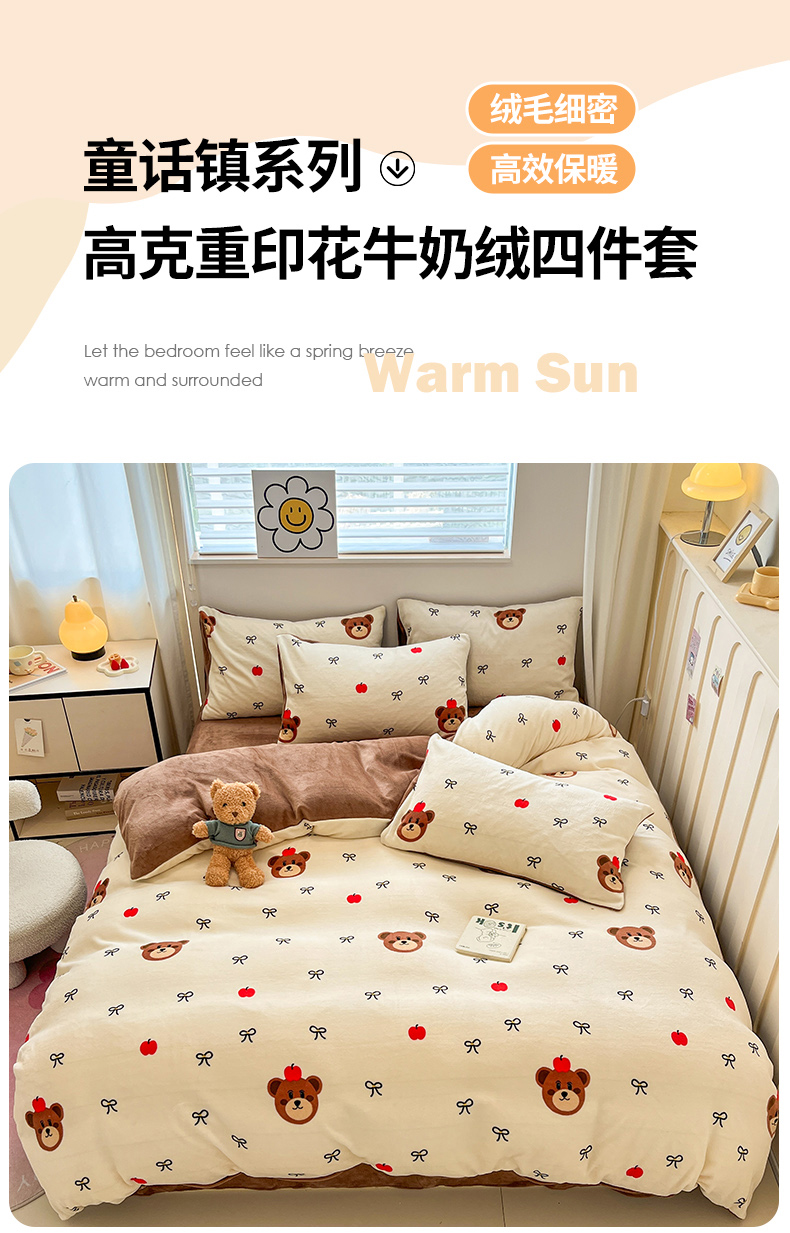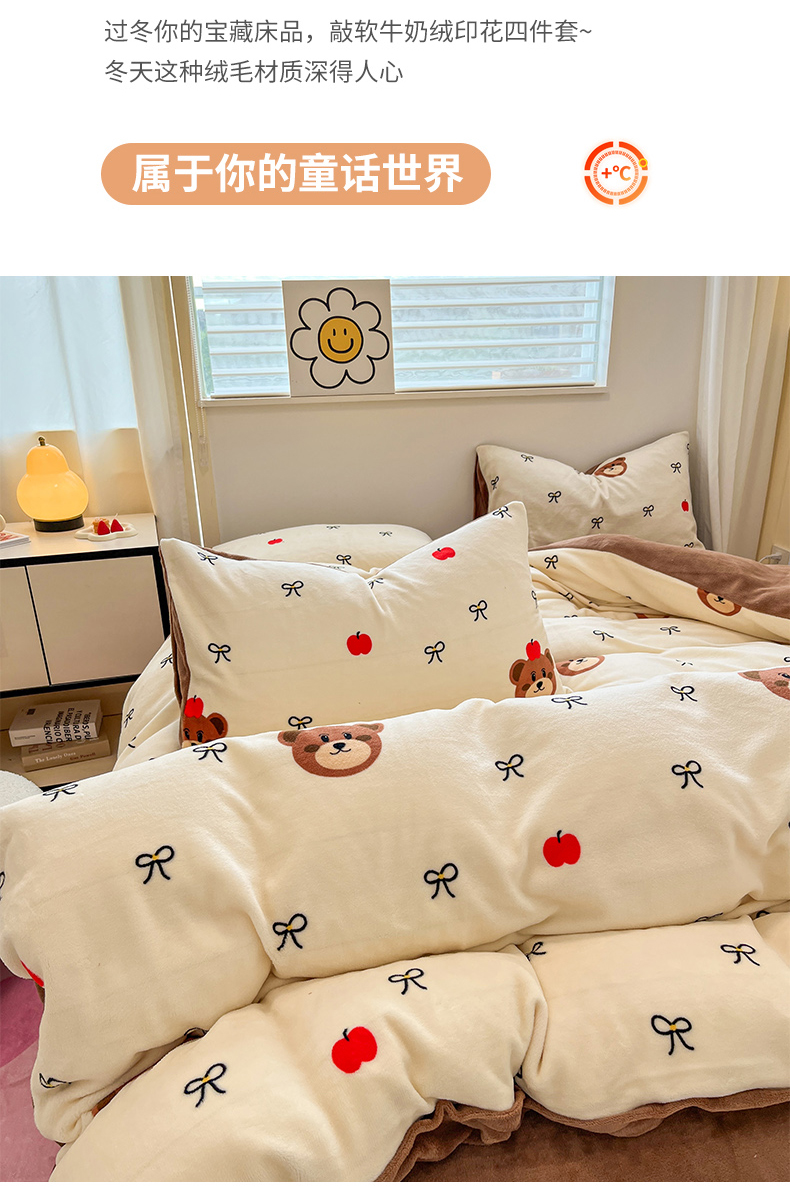 商品名称:捌月 2024新款童话镇系列高克重印花牛奶绒四件套卡通小清新加厚保暖绒套件 千与千寻