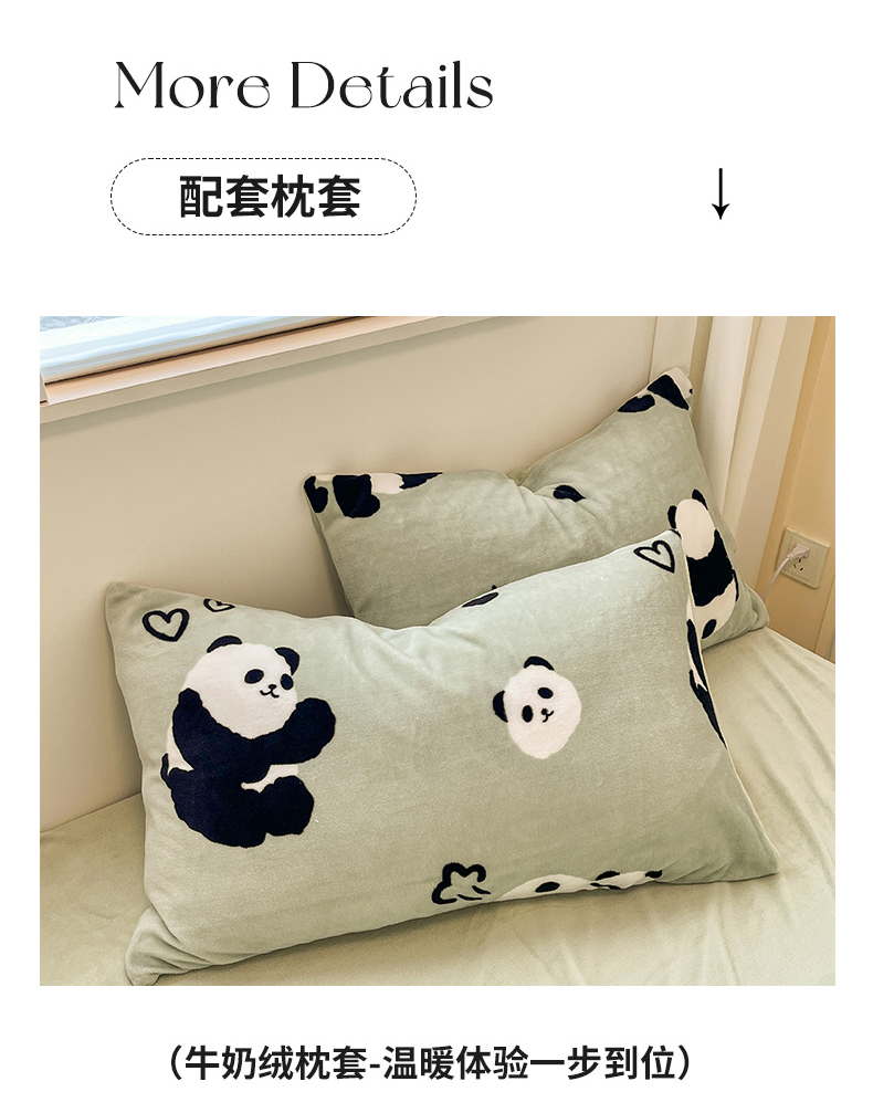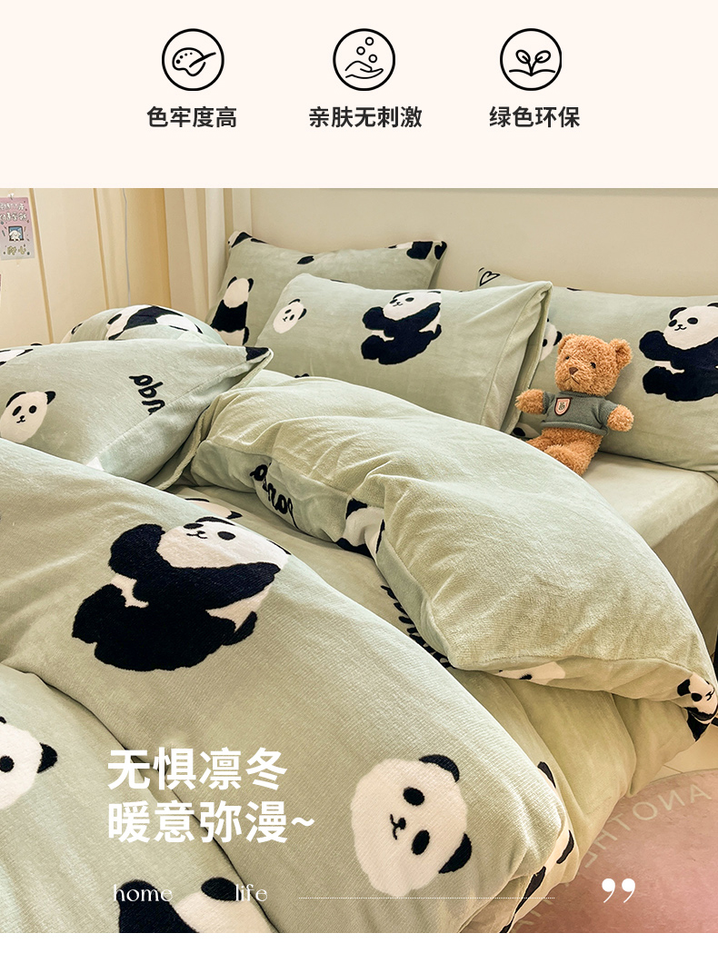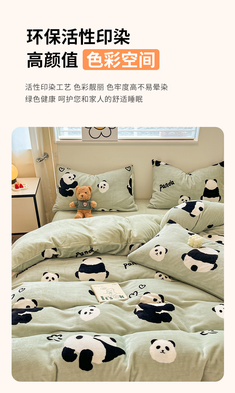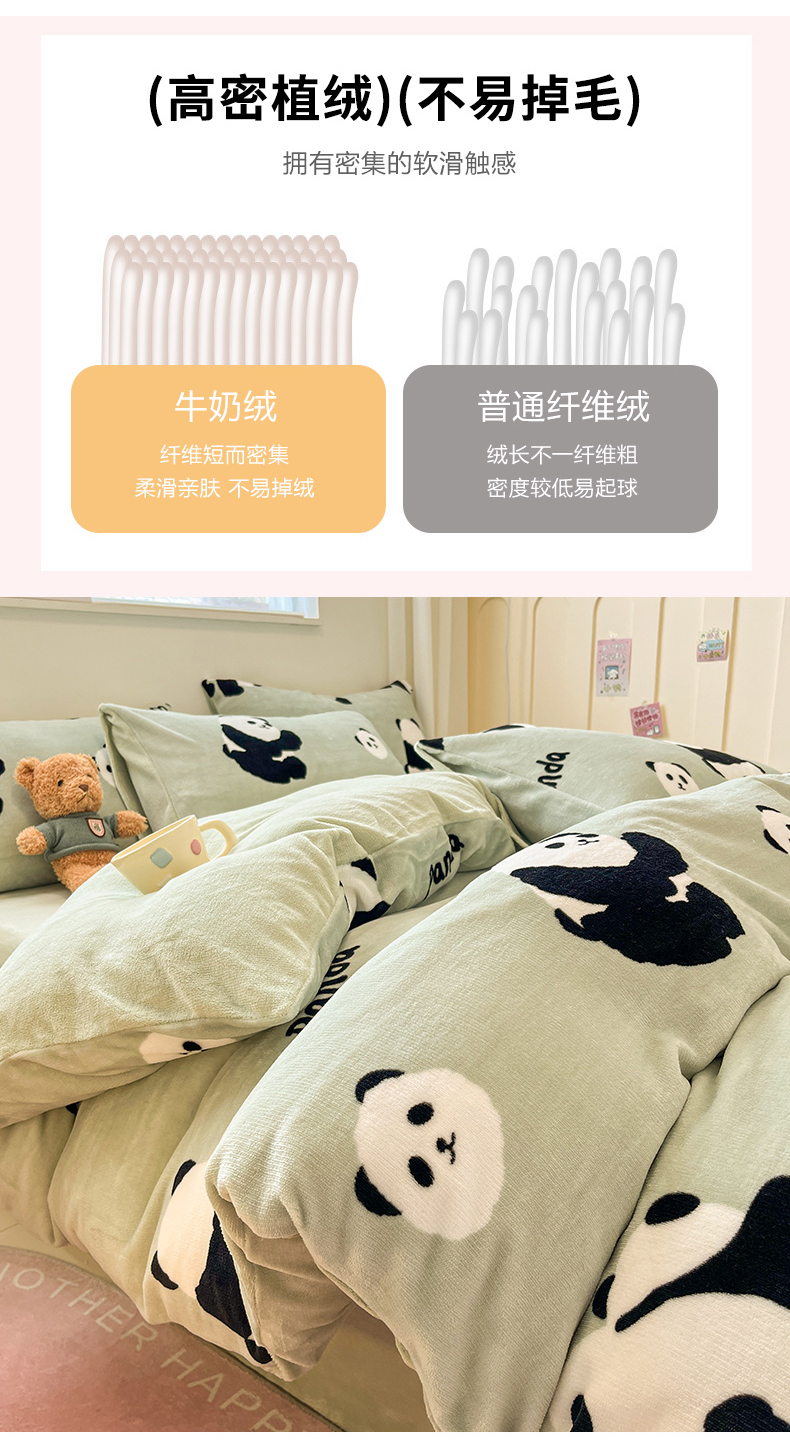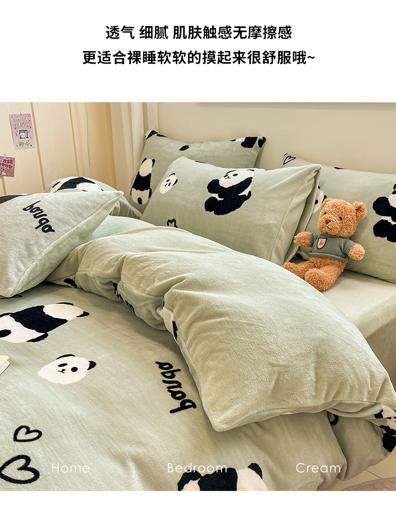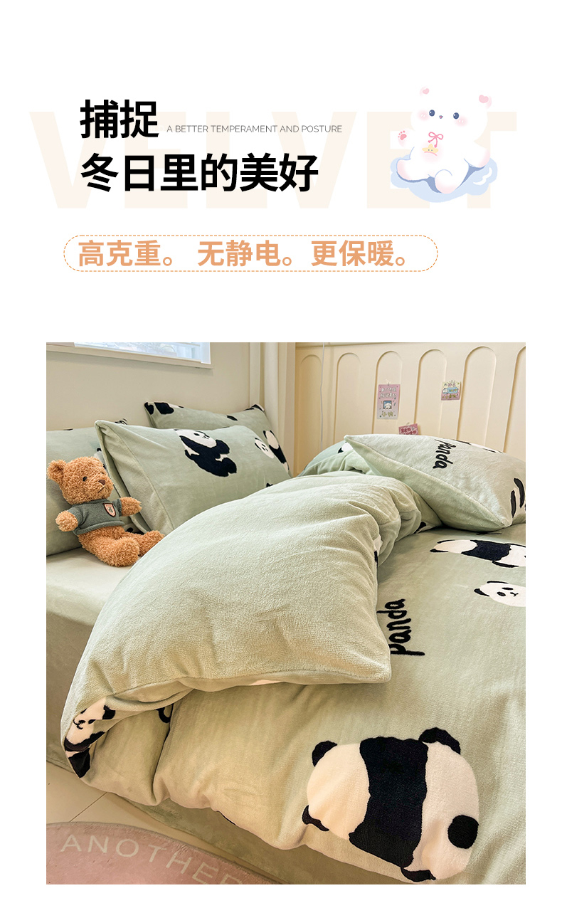 商品名称:捌月 2024新款童话镇系列高克重印花牛奶绒四件套卡通小清新加厚保暖绒套件 熊敦敦