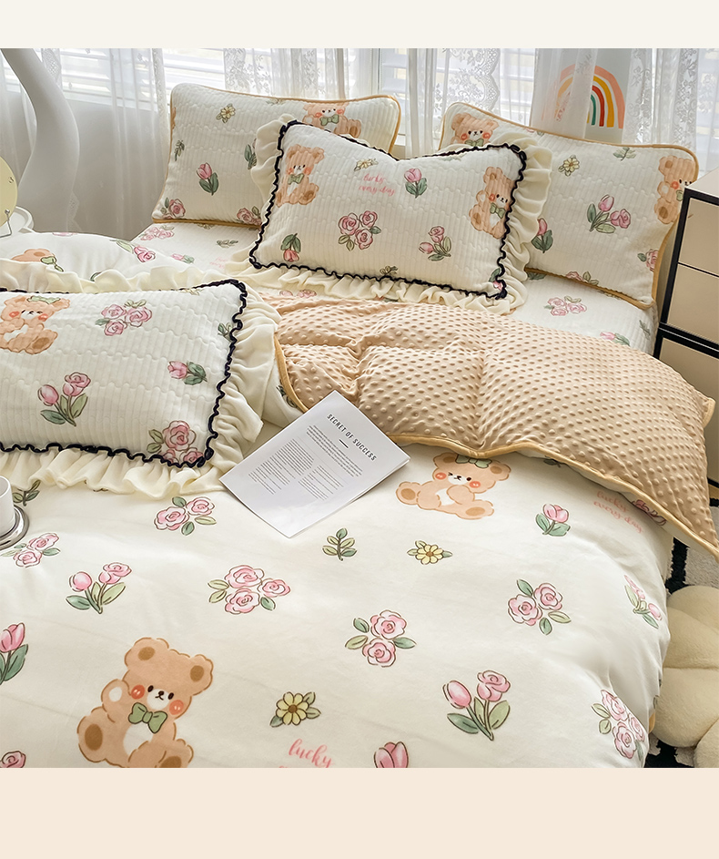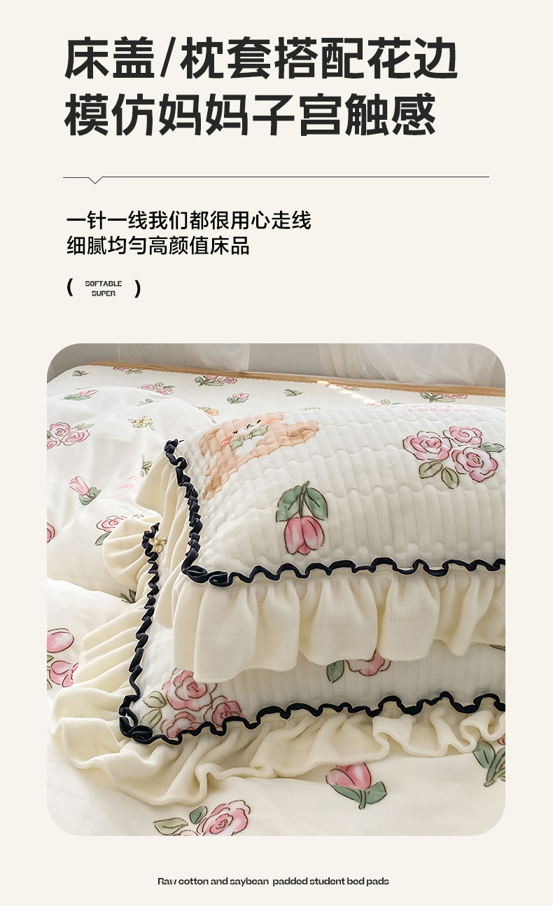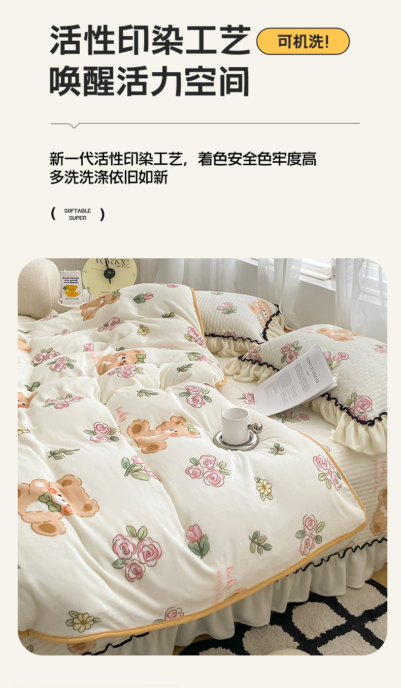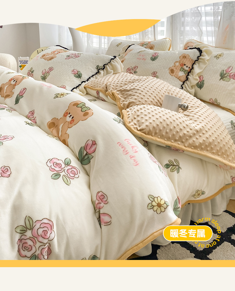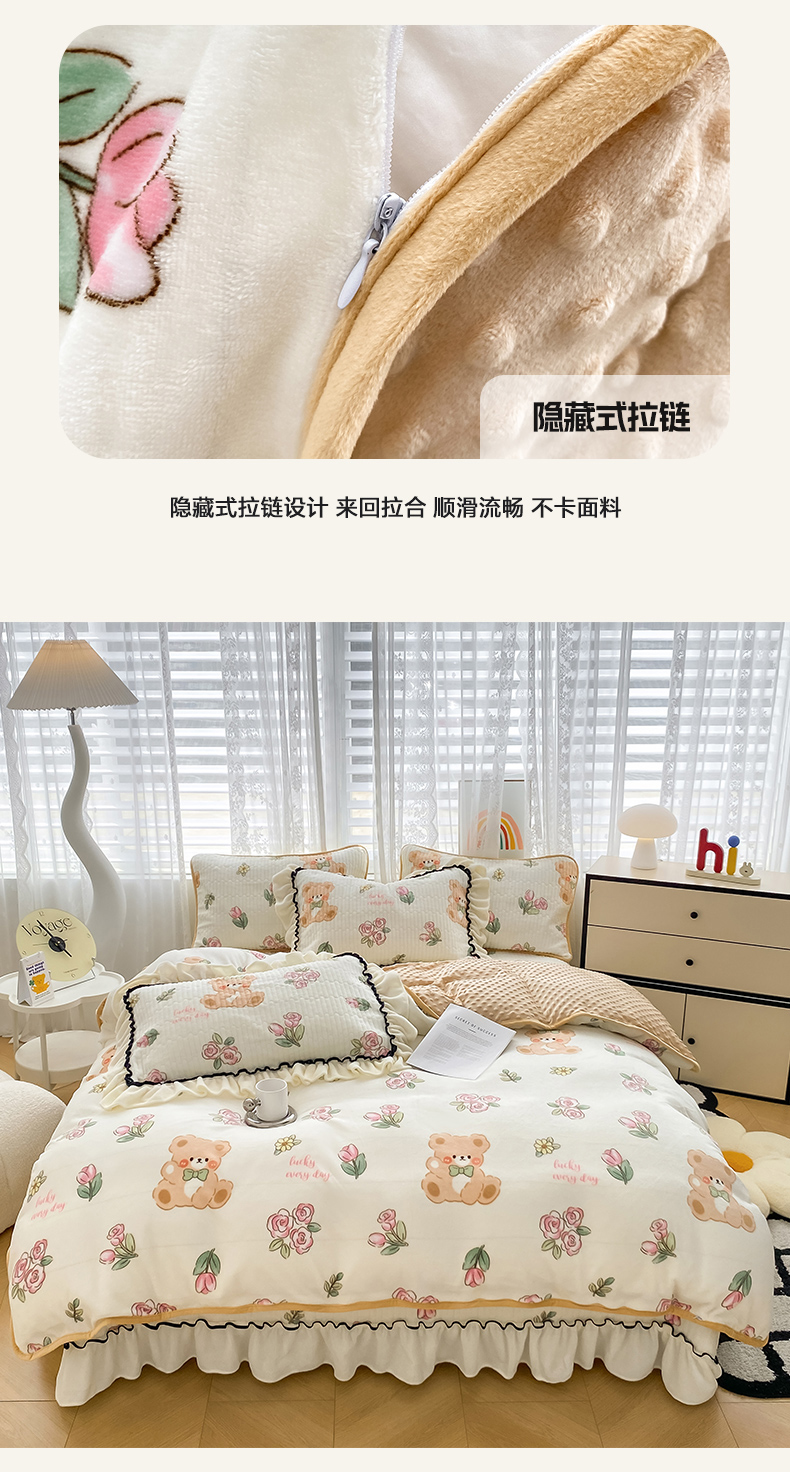 当前位置: 91家纺网 > 商品网购 > 床品套件 > 四件套 > 牛奶绒四件套 > 格真 2024新款加厚保暖豆豆绒牛奶绒单床盖被套三件套四件套 玫瑰恋语