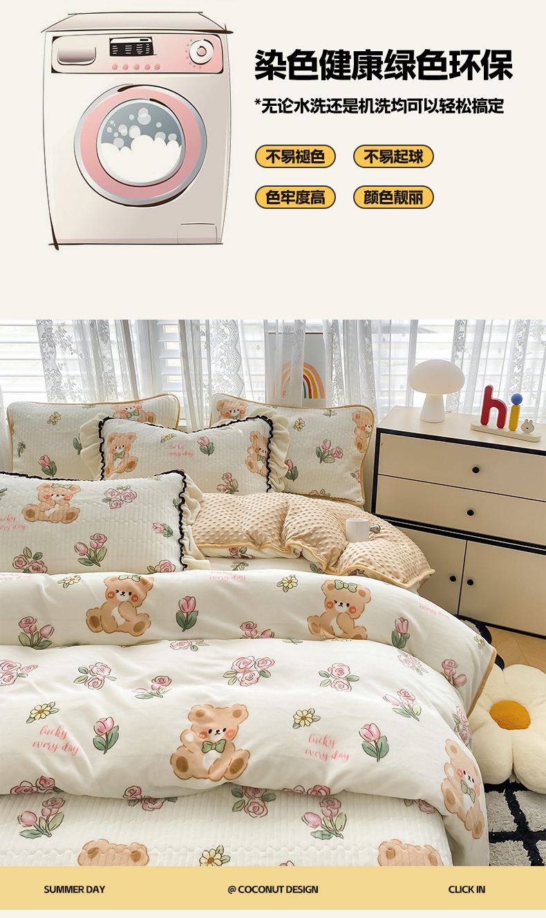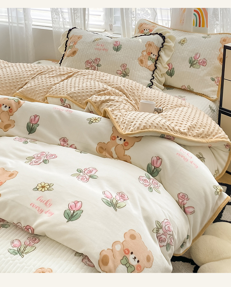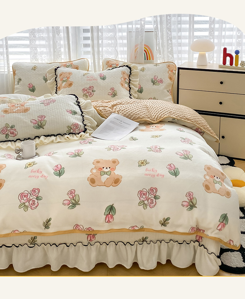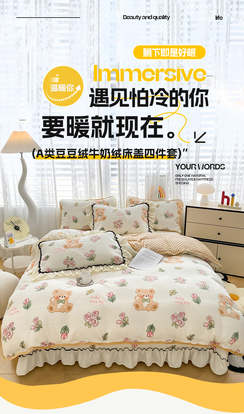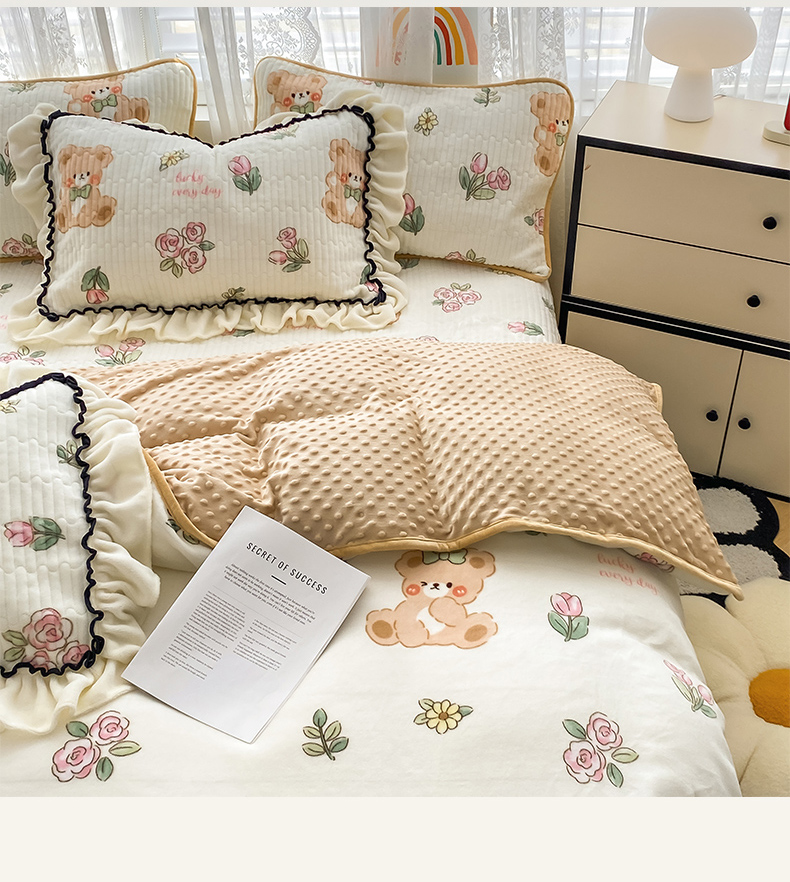 当前位置: 91家纺网 > 商品网购 > 床品套件 > 四件套 > 牛奶绒四件套 > 格真 2024新款加厚保暖豆豆绒牛奶绒单床盖被套三件套四件套 玫瑰恋语