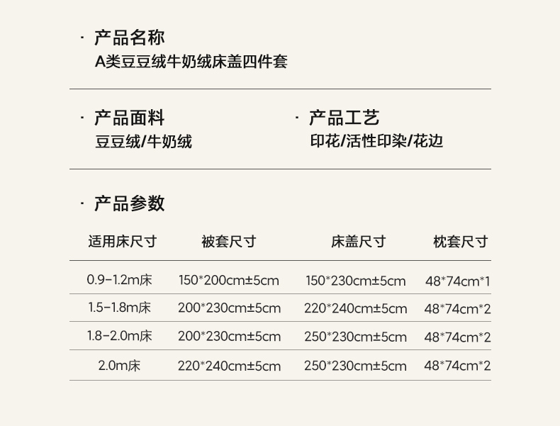 1.8床 200*230 床盖四件套 | ¥150.00 |