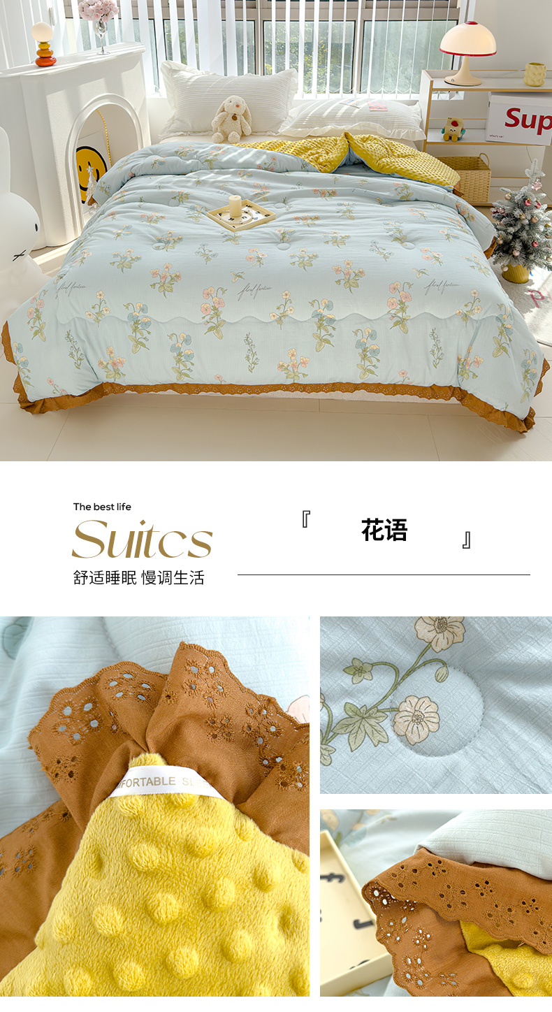 • 91家纺网 家纺一手货源 找家纺 (总)芯恋 25年新款亚麻风全棉花边云感冬被四季被加厚冬被,苍兰,瑰丽,花弄影,花影,蒹葭,落霞,晚秋,云清