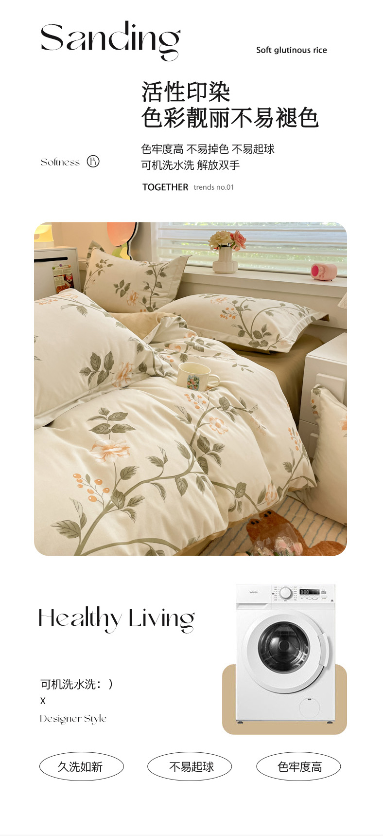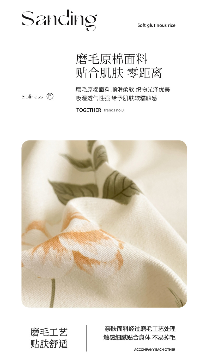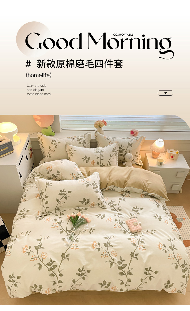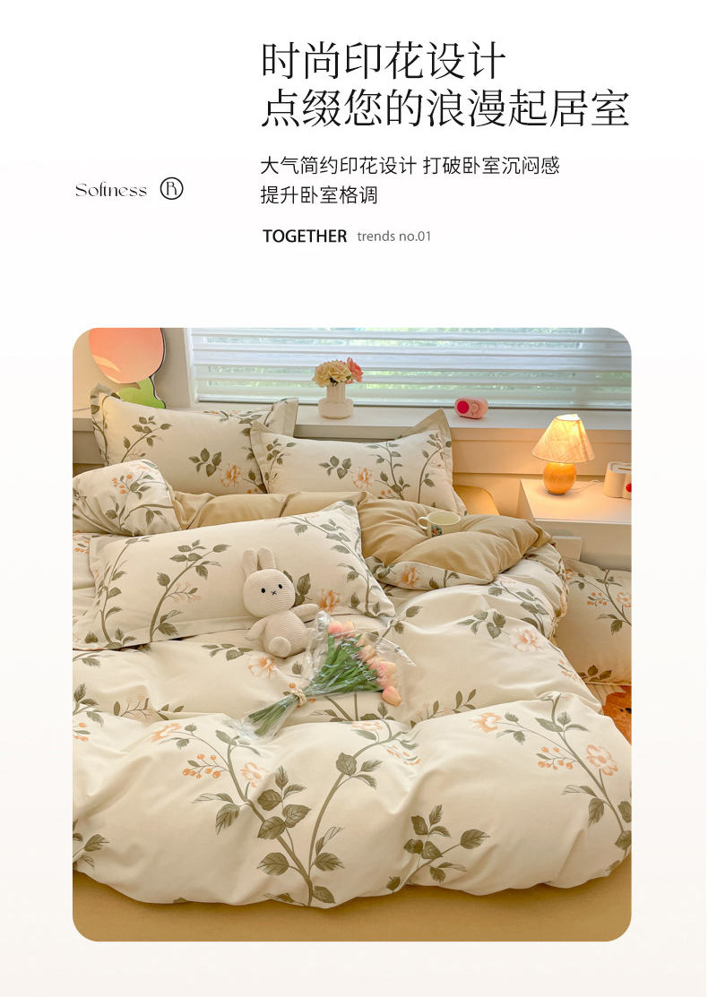 当前位置: 91家纺网 > 商品网购 > 床品套件 > 四件套 > 普通磨毛四件套 > 慕尚家纺 2025新款原棉磨毛四件套单被套系列-四件套 向阳花开