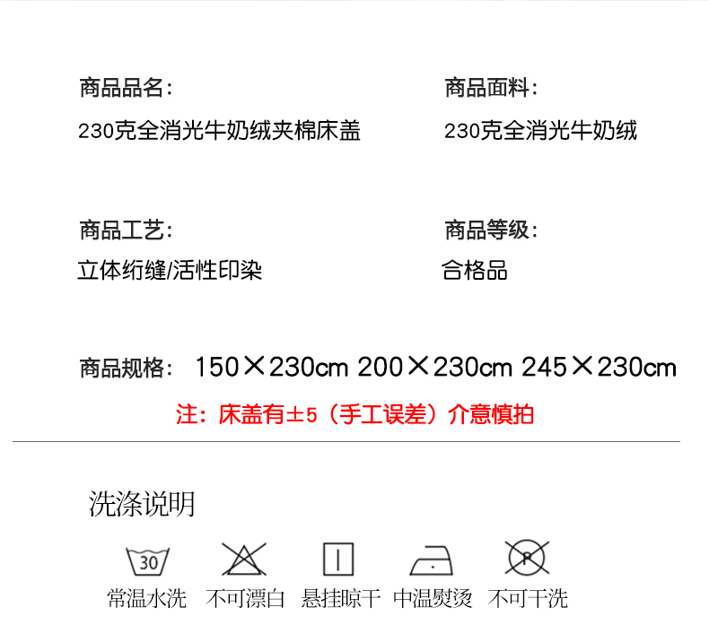 245cmx230cm床盖+枕套一对 | ¥100.00 |