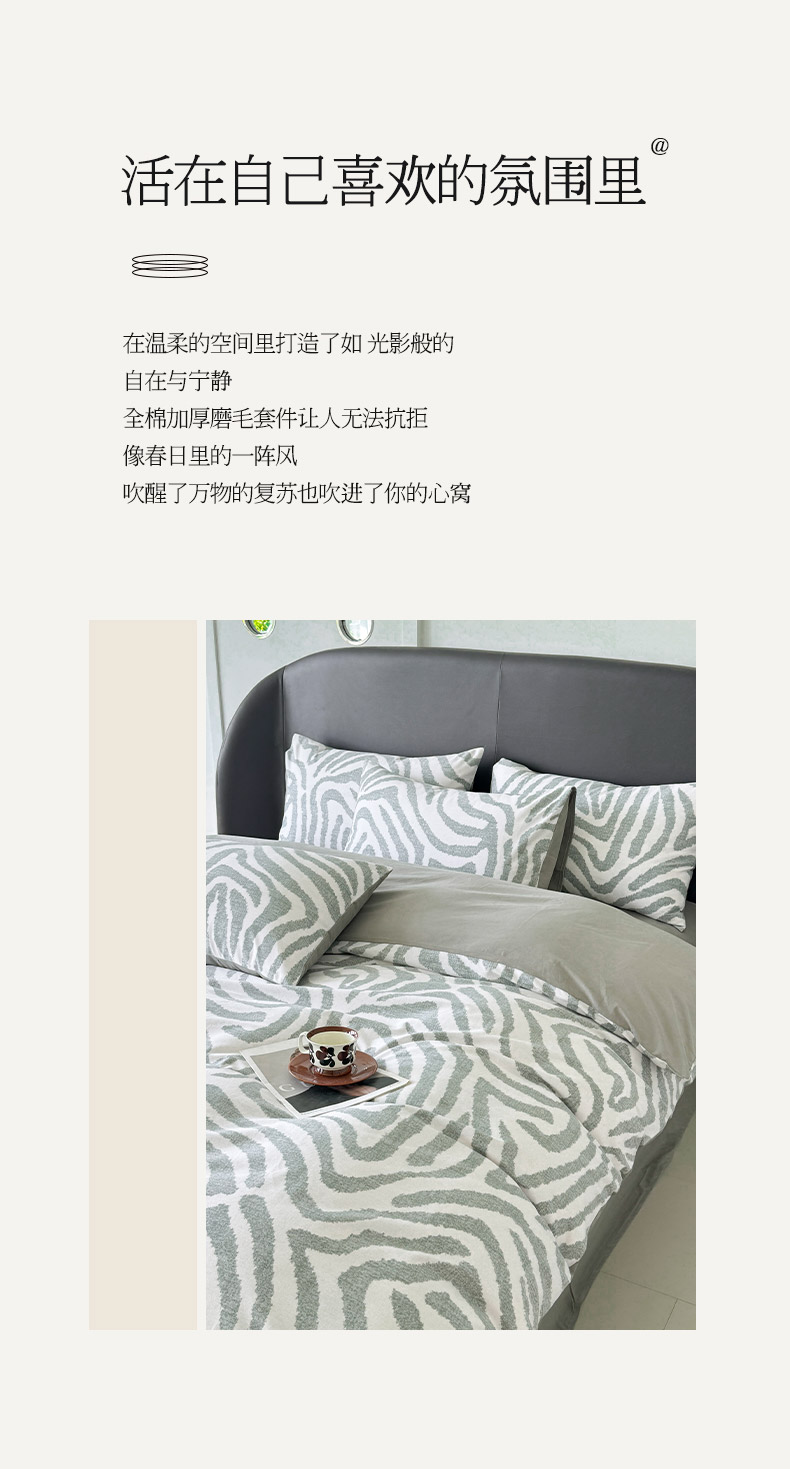 (总)千朵 2025新款全棉磨毛四件套,浪漫人生粉,浪漫人生米,香漫豆沙,茵然豆沙,茵然咖,珍妮咖,珍妮绿