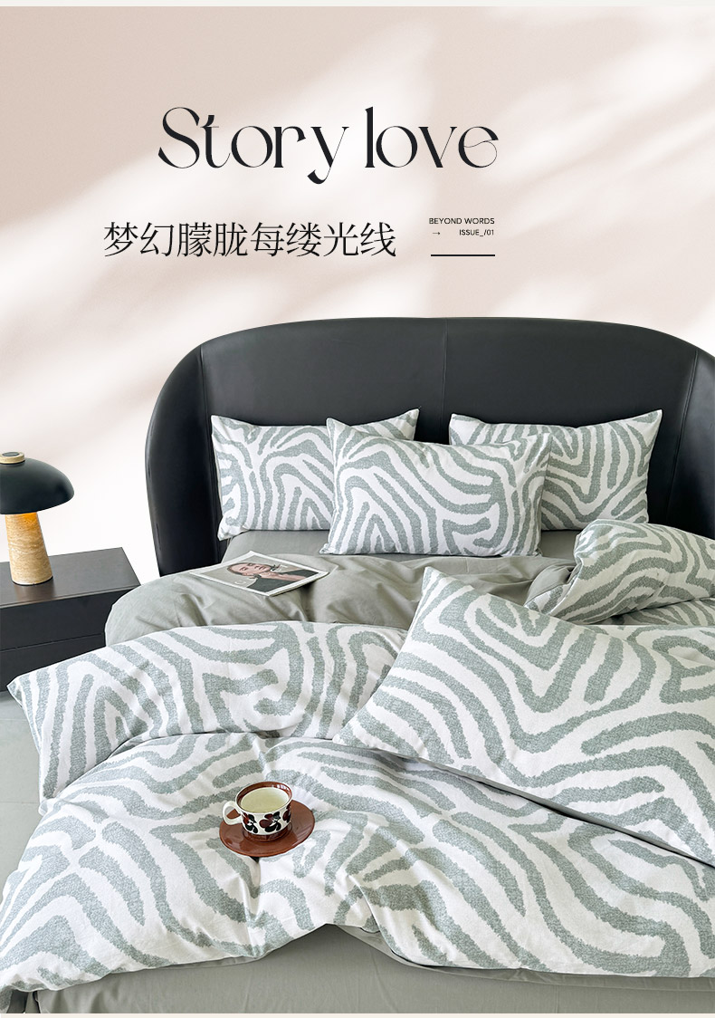 (总)千朵 2025新款全棉纯棉色织提花水洗棉四件套 富士系列,富士果绿,富士灰,富士奶黄,富士浅兰,富士浅紫,富士森绿,富士雾兰