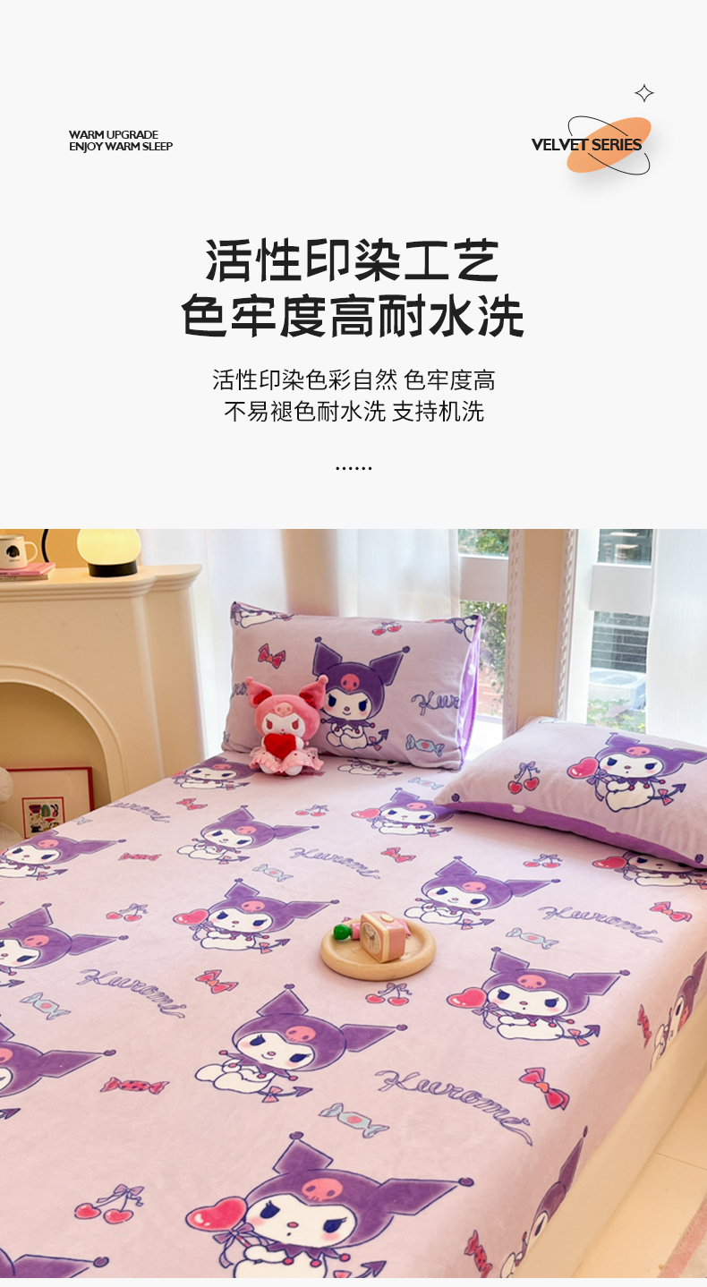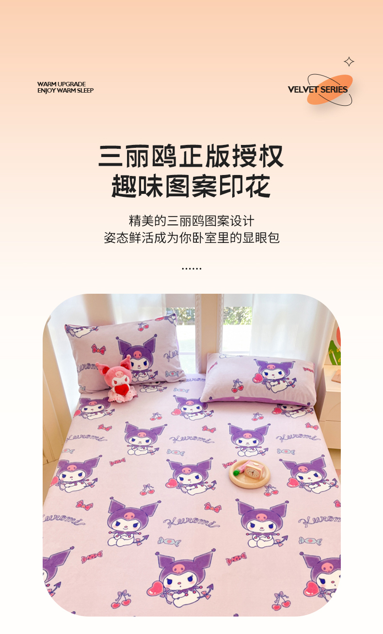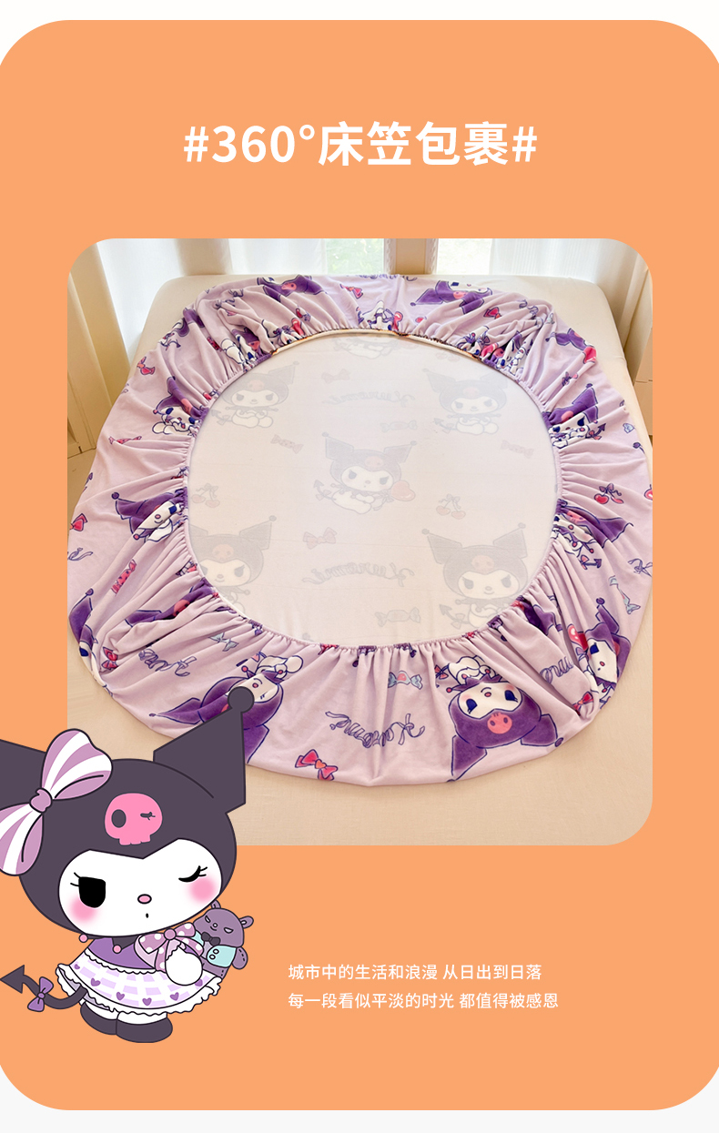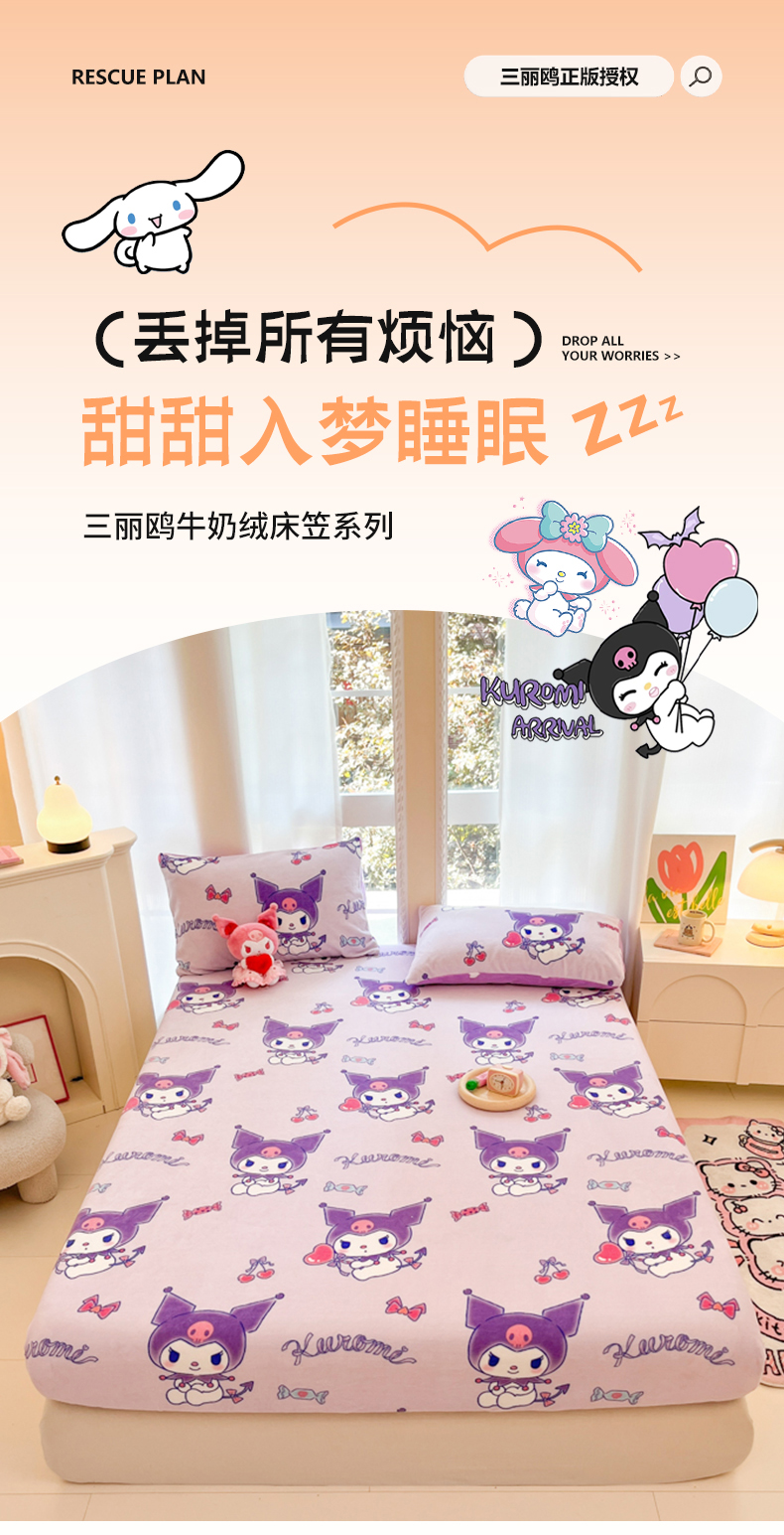 博雅 2024新款三丽鸥牛奶绒小版床笠系列 牛奶绒小版-新紫色库洛米