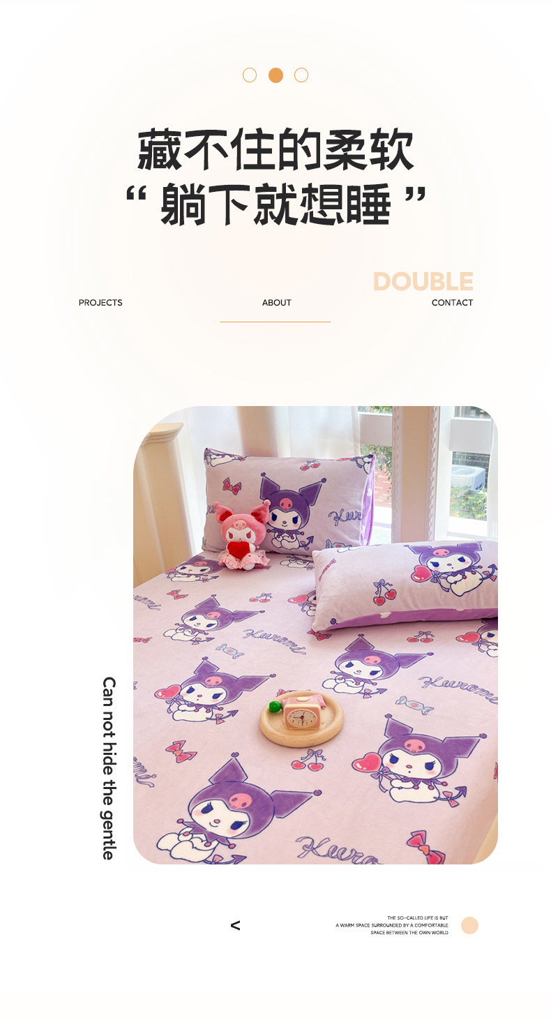 • 91家纺网 家纺一手货源 找家纺 博雅 2024新款三丽鸥牛奶绒小版床笠系列 牛奶绒小版-新紫色库洛米