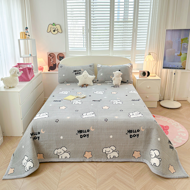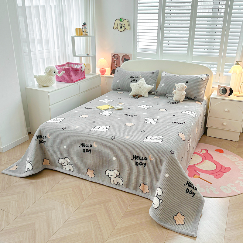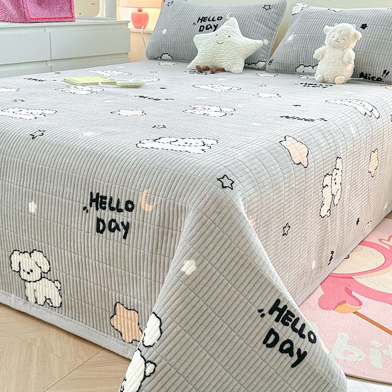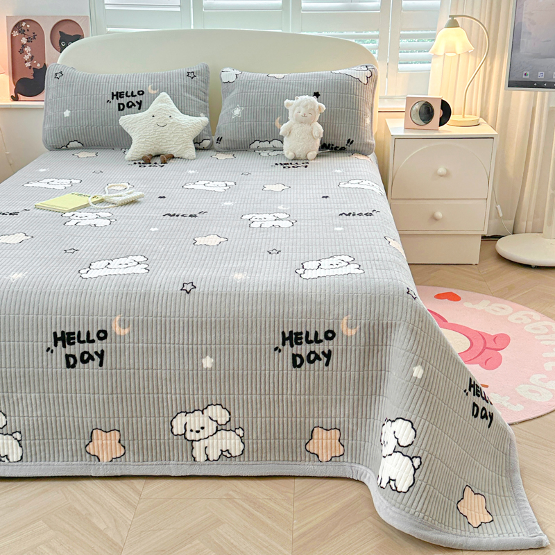 梵朴 2024新款牛奶绒直角包边床盖 顽皮狗
