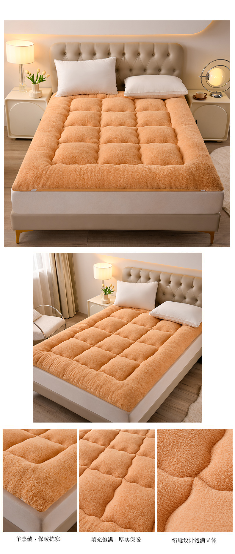 商品名称:预言家纺 2024新款3D磨毛羽丝绒羊羔绒床垫 驼色