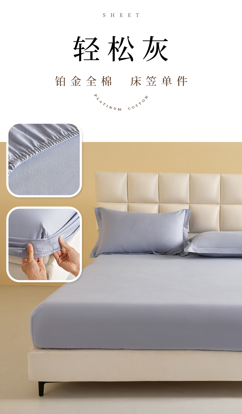 元元被芯 2025款纯色全丝光-全精梳高密纺-铂金A类全棉单床笠 轻松灰