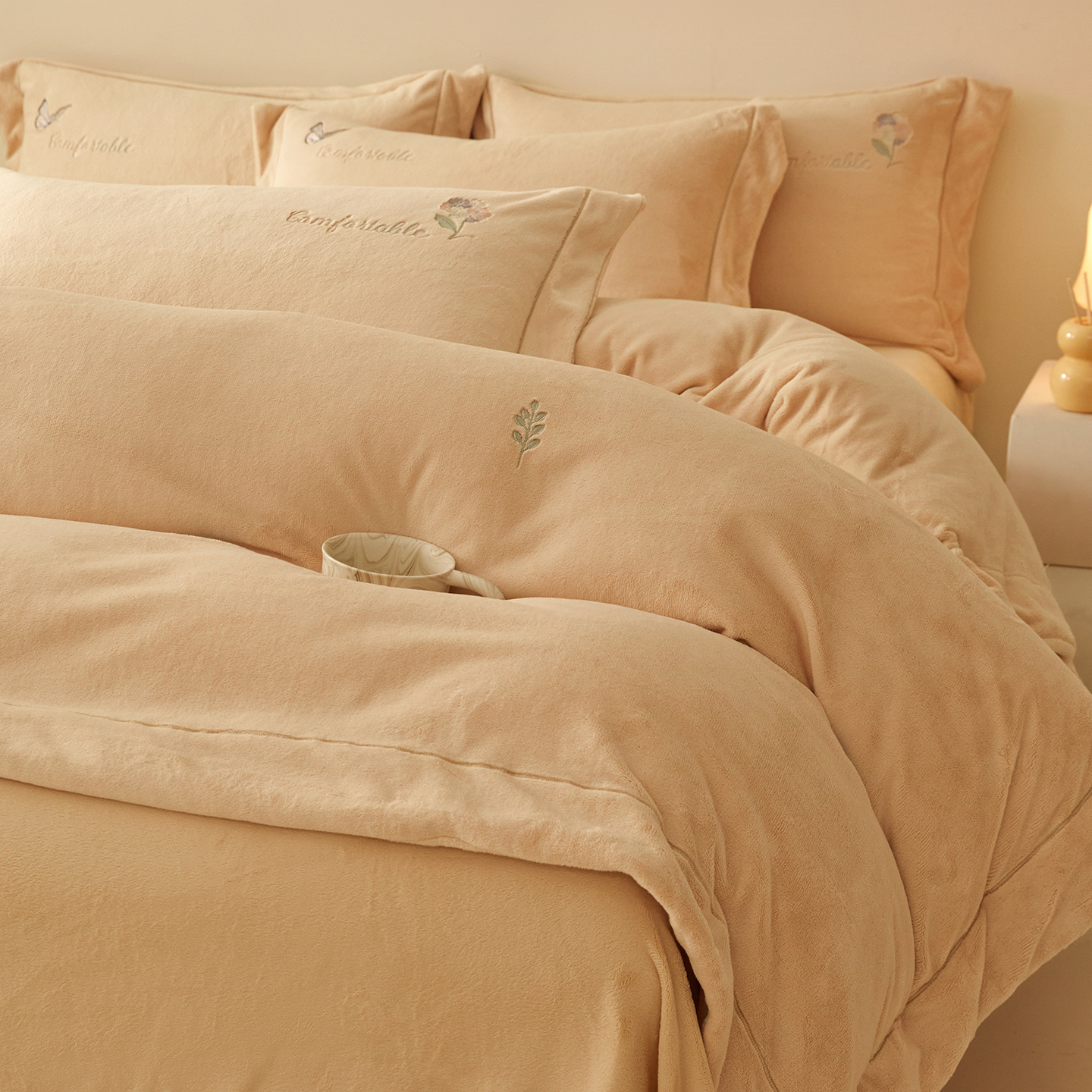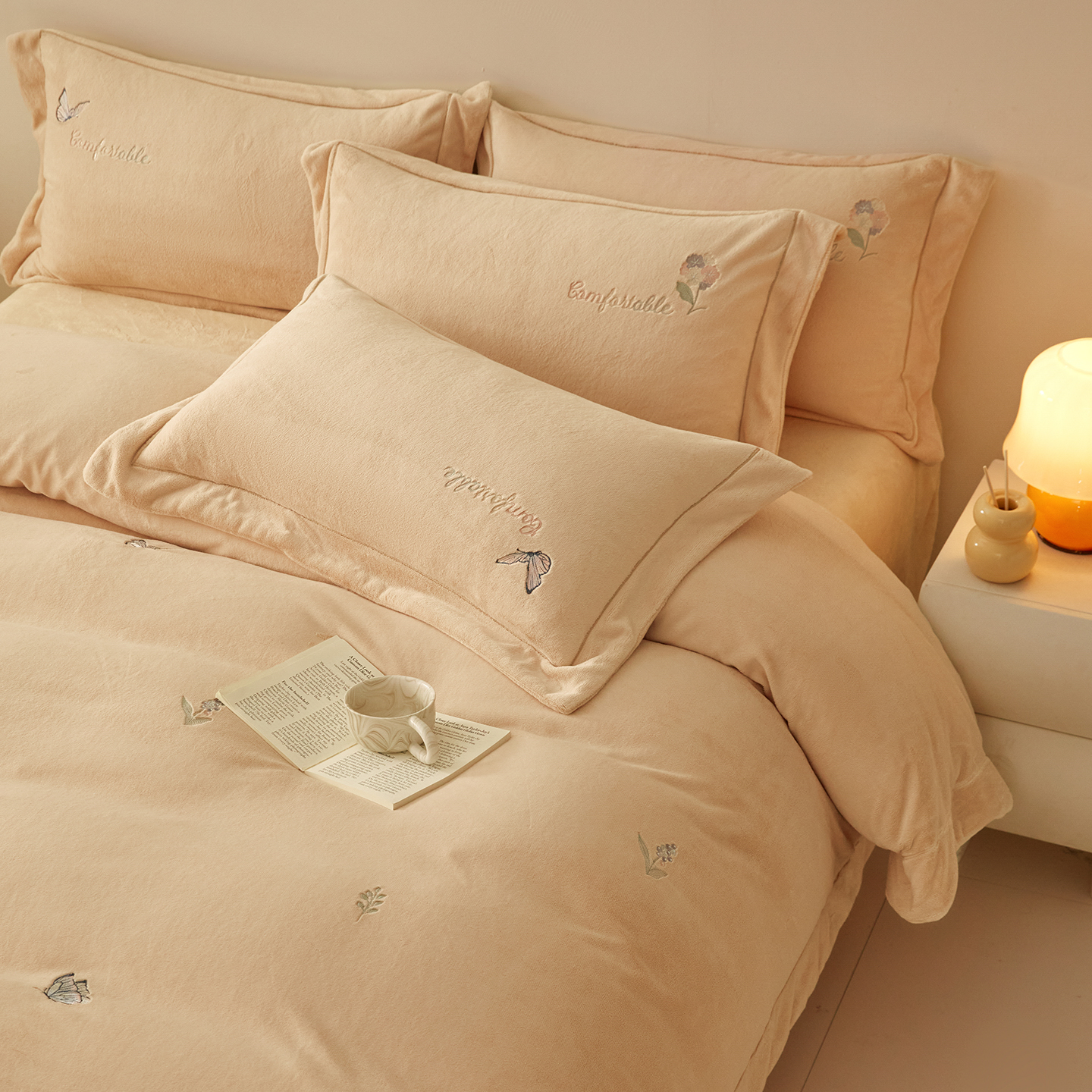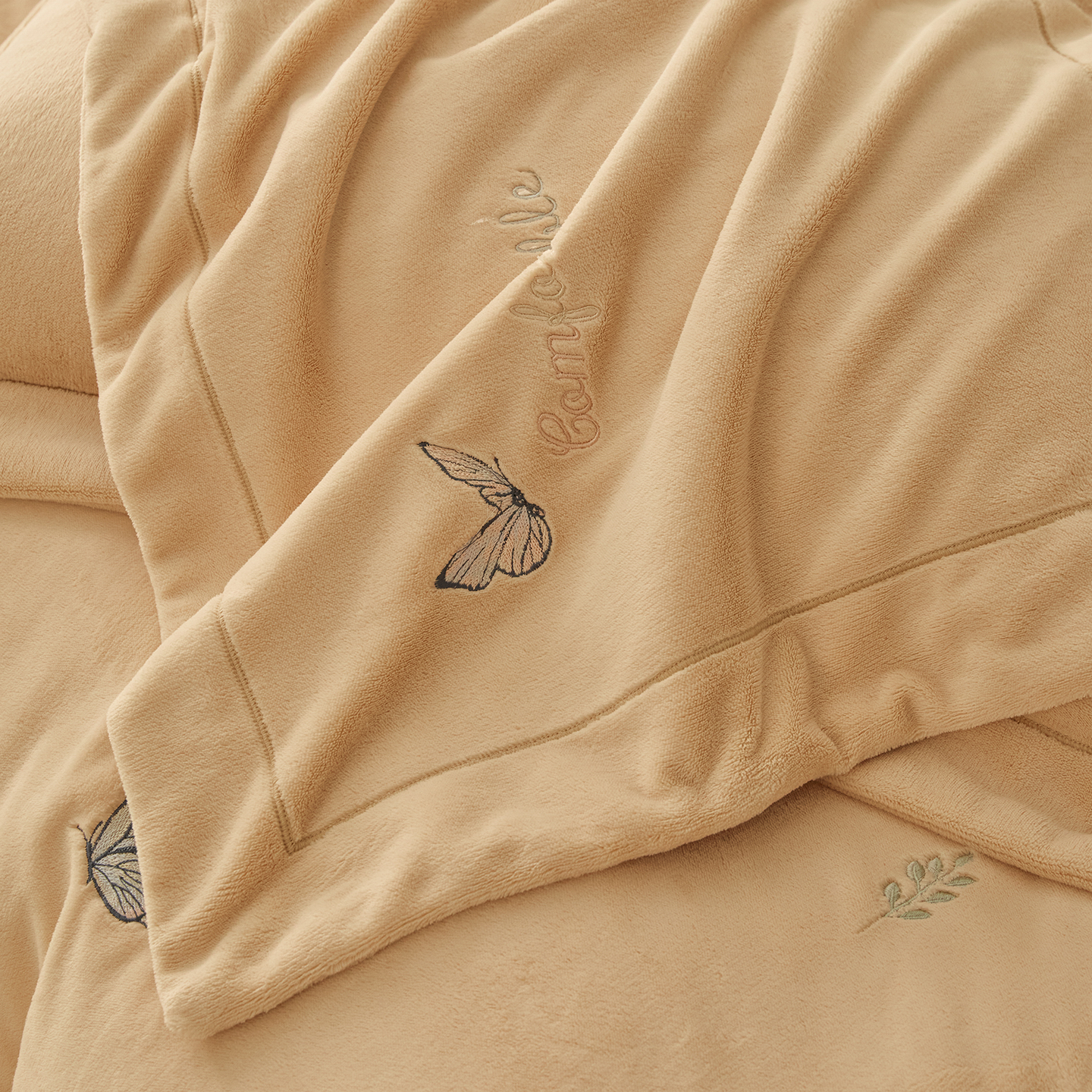 商品名称:新方向 2025新款全消光A类刺绣牛奶绒四件套-悦动 悦动-香槟