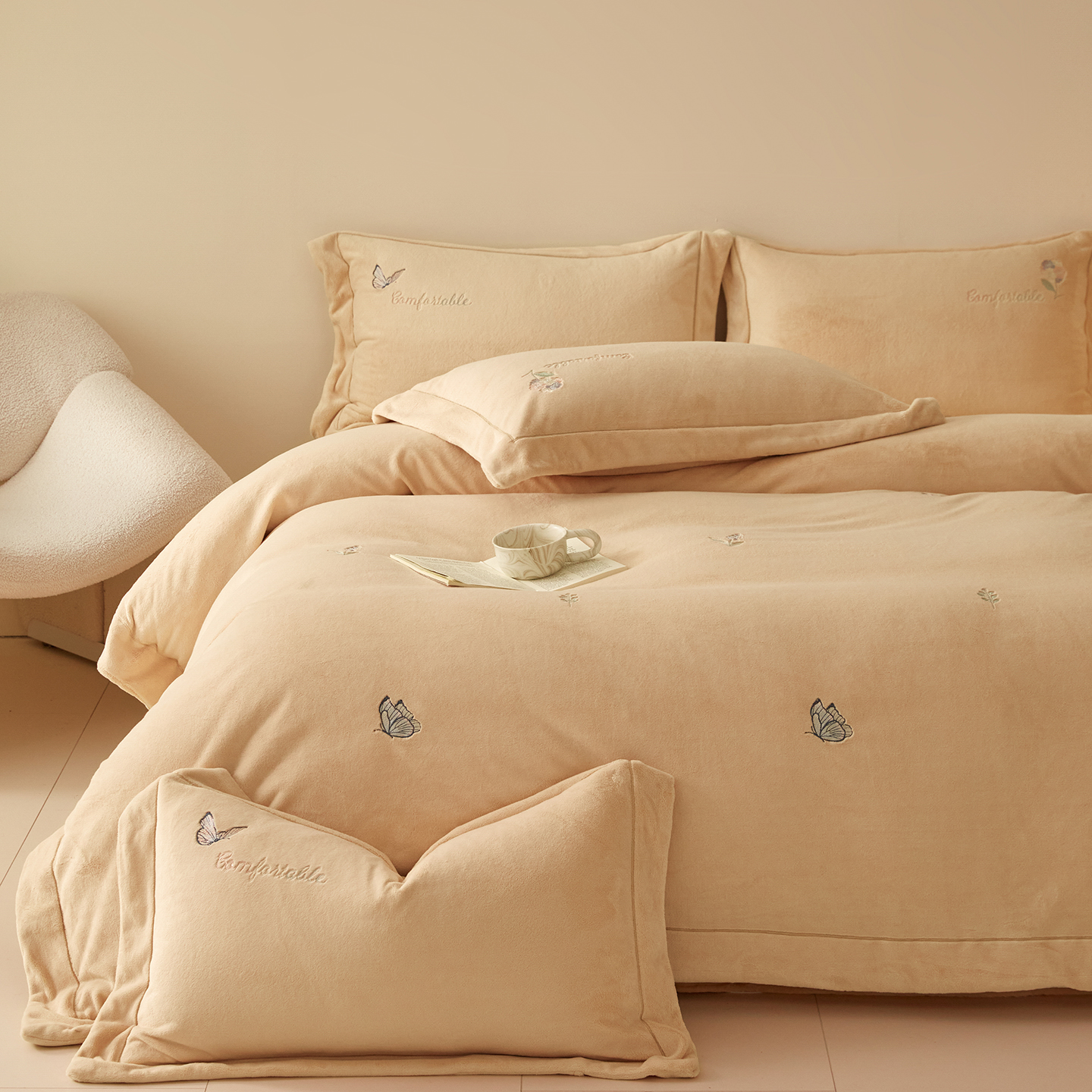 新方向 2025新款全消光A类刺绣牛奶绒四件套-悦动 悦动-香槟