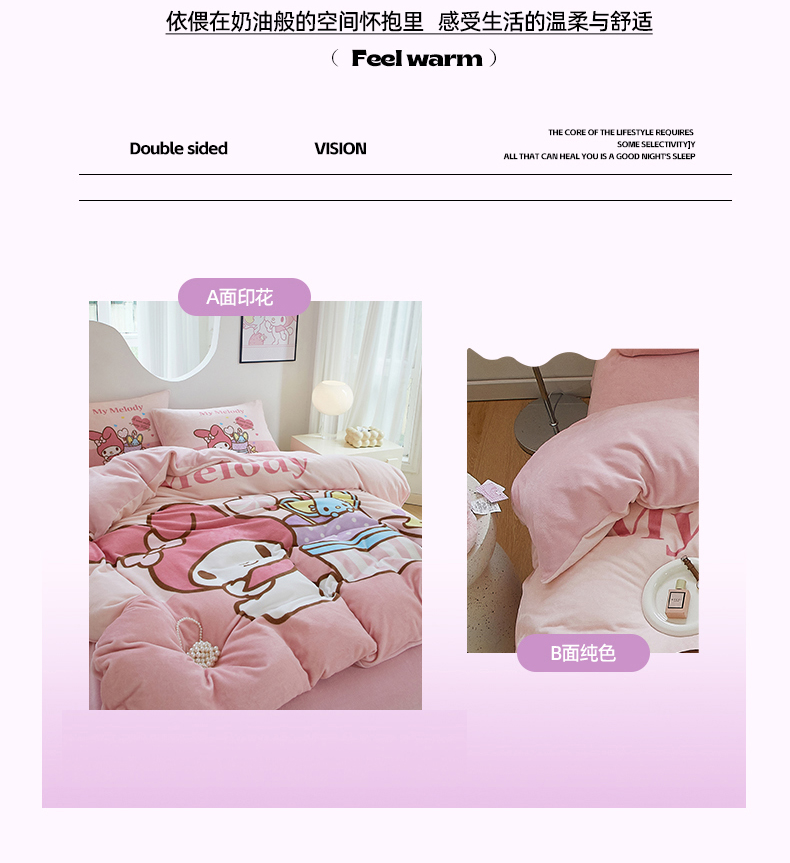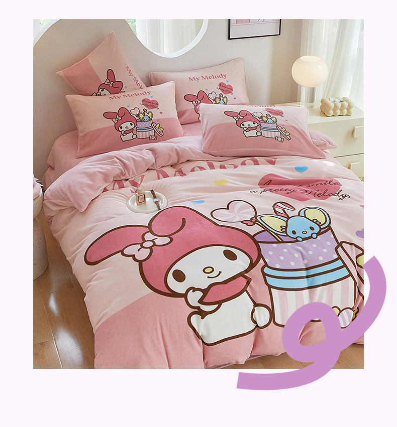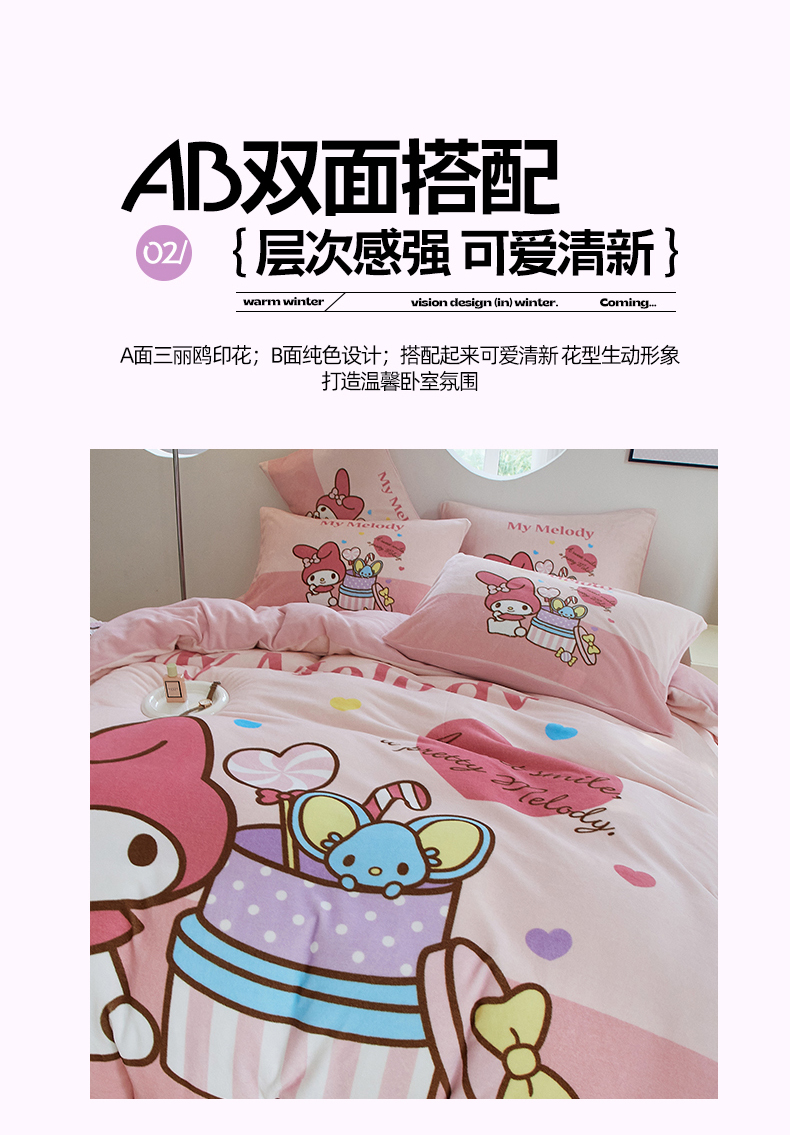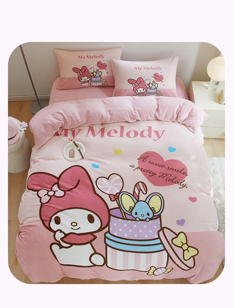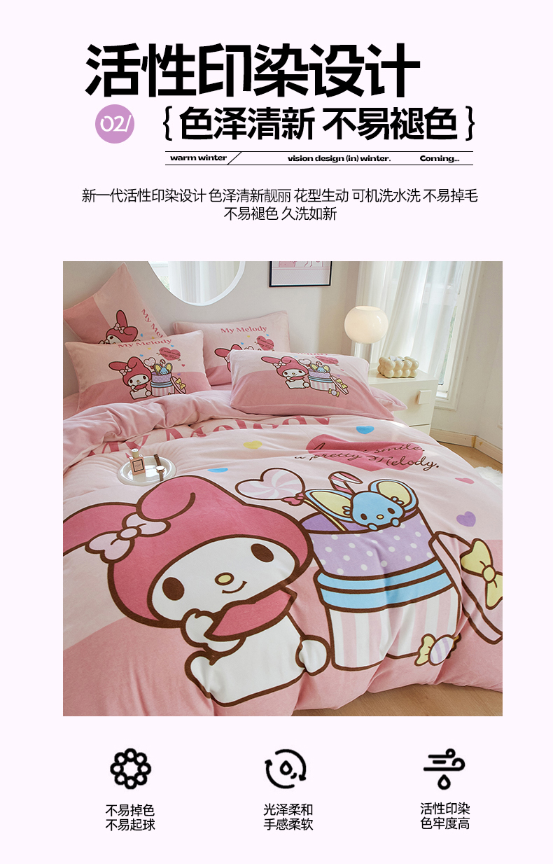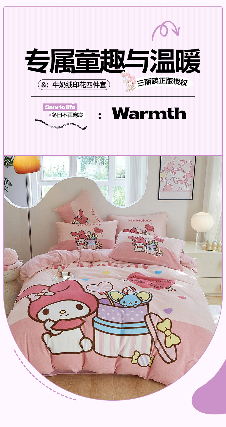 当前位置: 91家纺网 > 商品网购 > 床品套件 > 四件套 > 牛奶绒四件套 > 蘭菲家纺 2024新款牛奶绒卡通三丽鸥四件套 收礼物