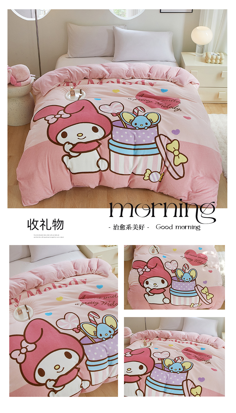 商品名称:蘭菲家纺 2024新款牛奶绒卡通三丽鸥单品被套 果茶