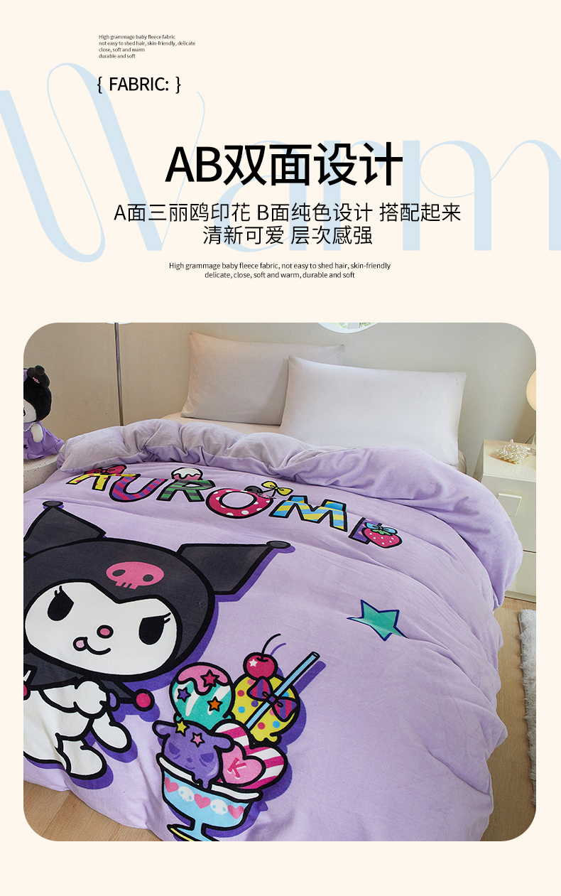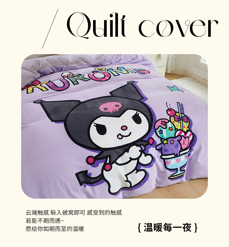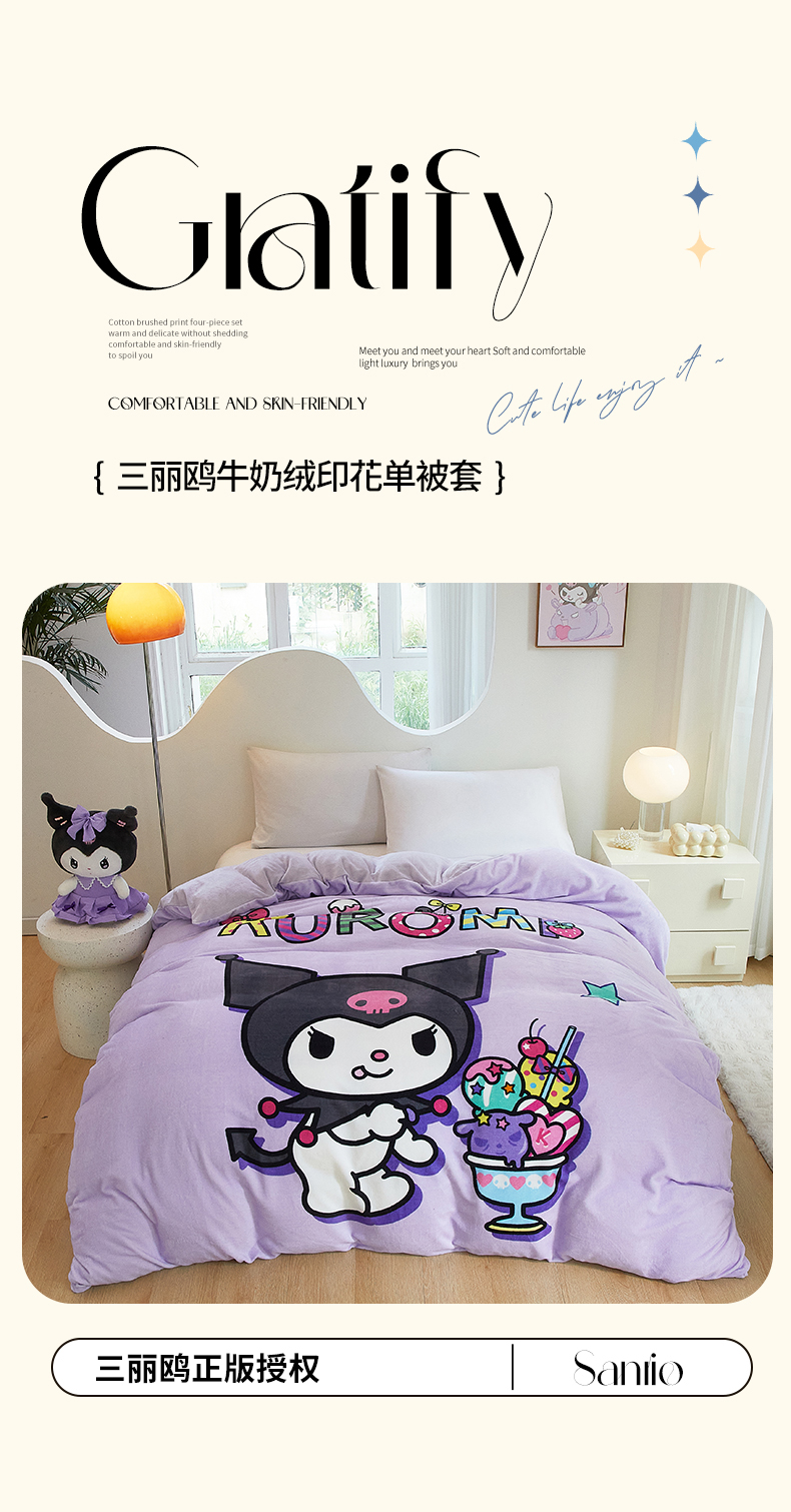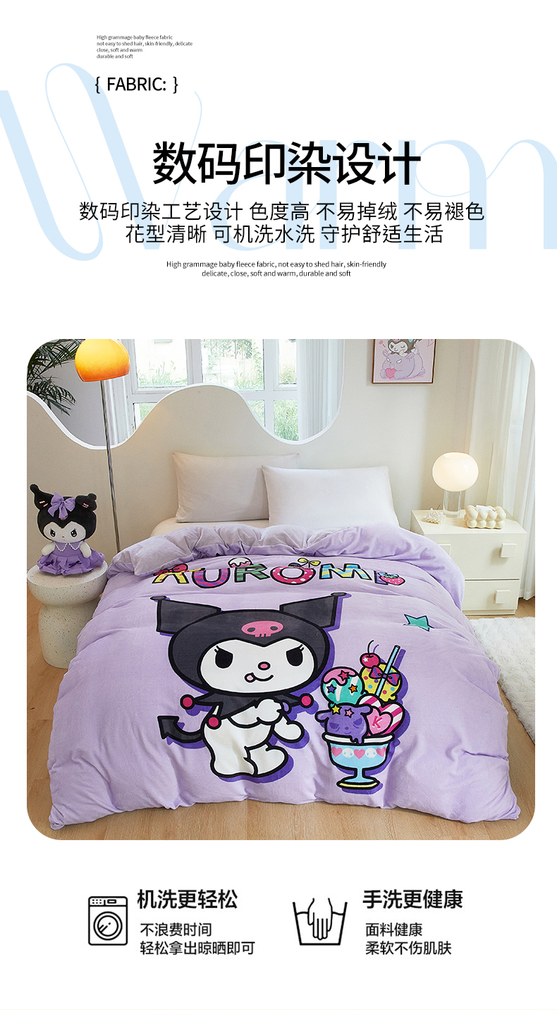 蘭菲家纺 2024新款牛奶绒卡通三丽鸥单品被套 果茶